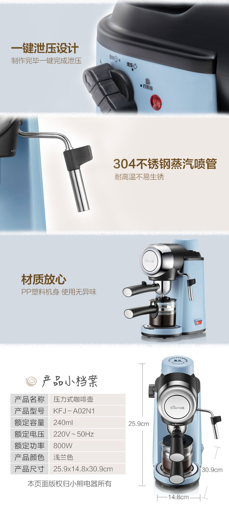 商品名称:Bear/小熊 咖啡机全自动迷你咖啡壶 KFJ-A02N1