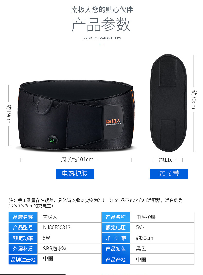商品名称:南极人 电热护腰带 NJ86F50313