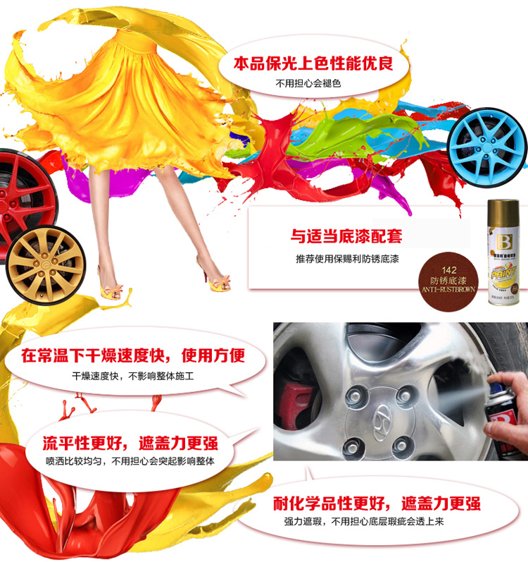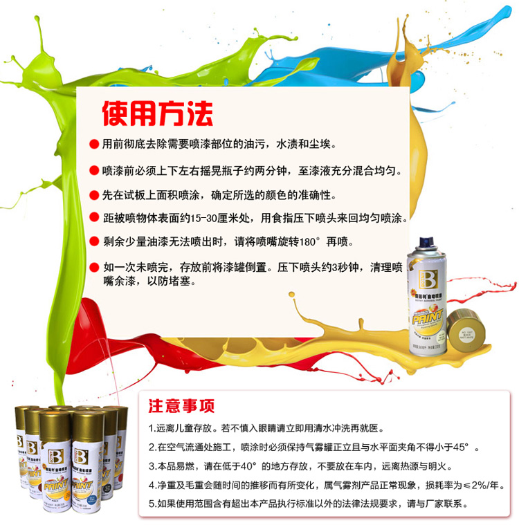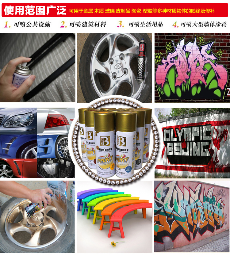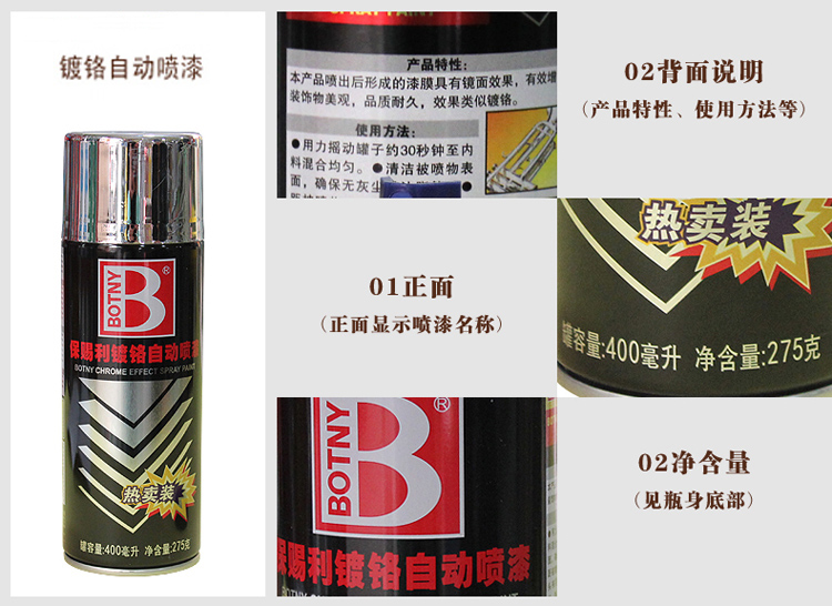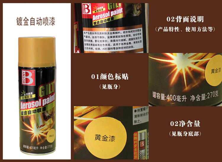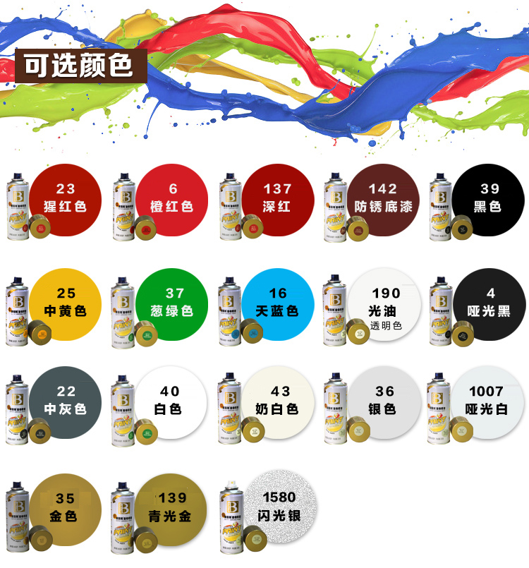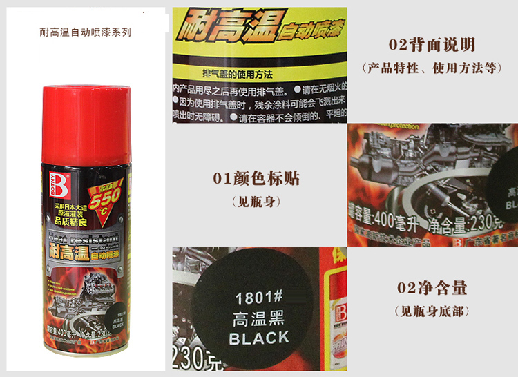 商品名称:保赐利 自动喷漆汽车漆摩托漆电动车漆涂鸦喷漆罐墙面轮毂漆 金装230g B-1924 4#亚光黑