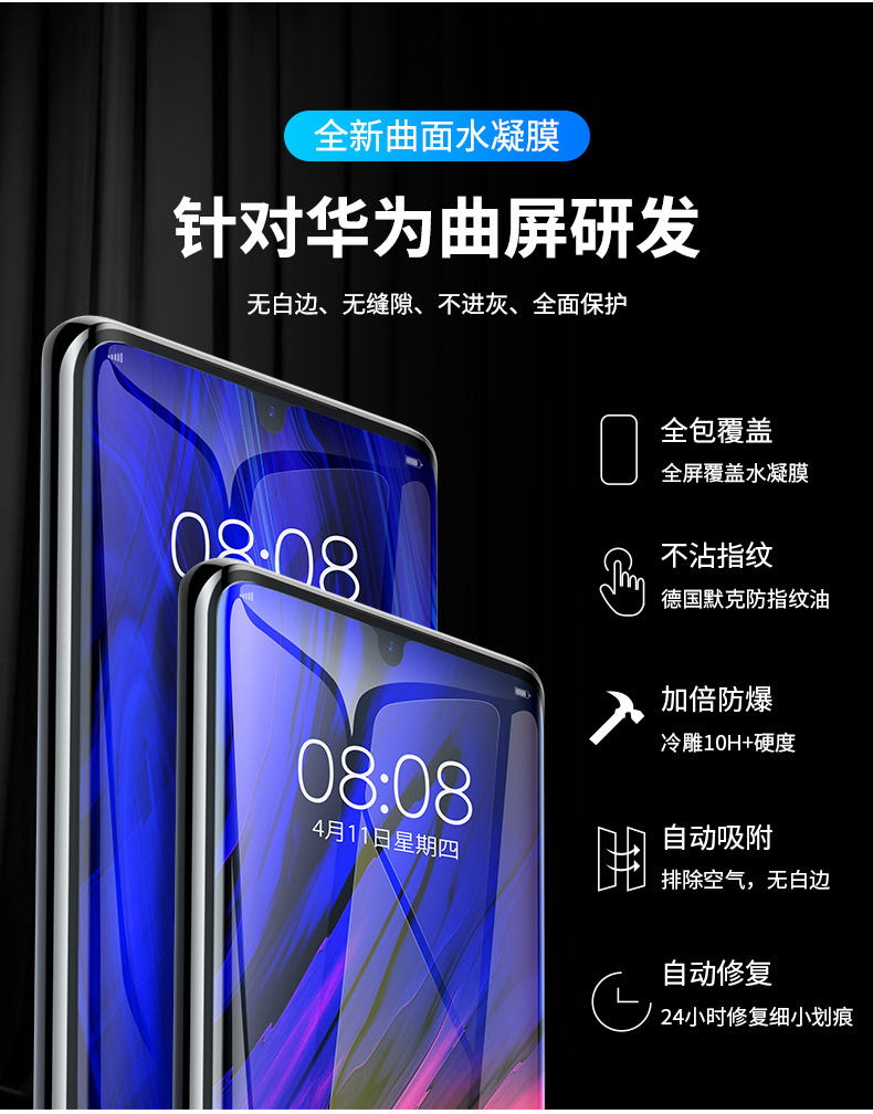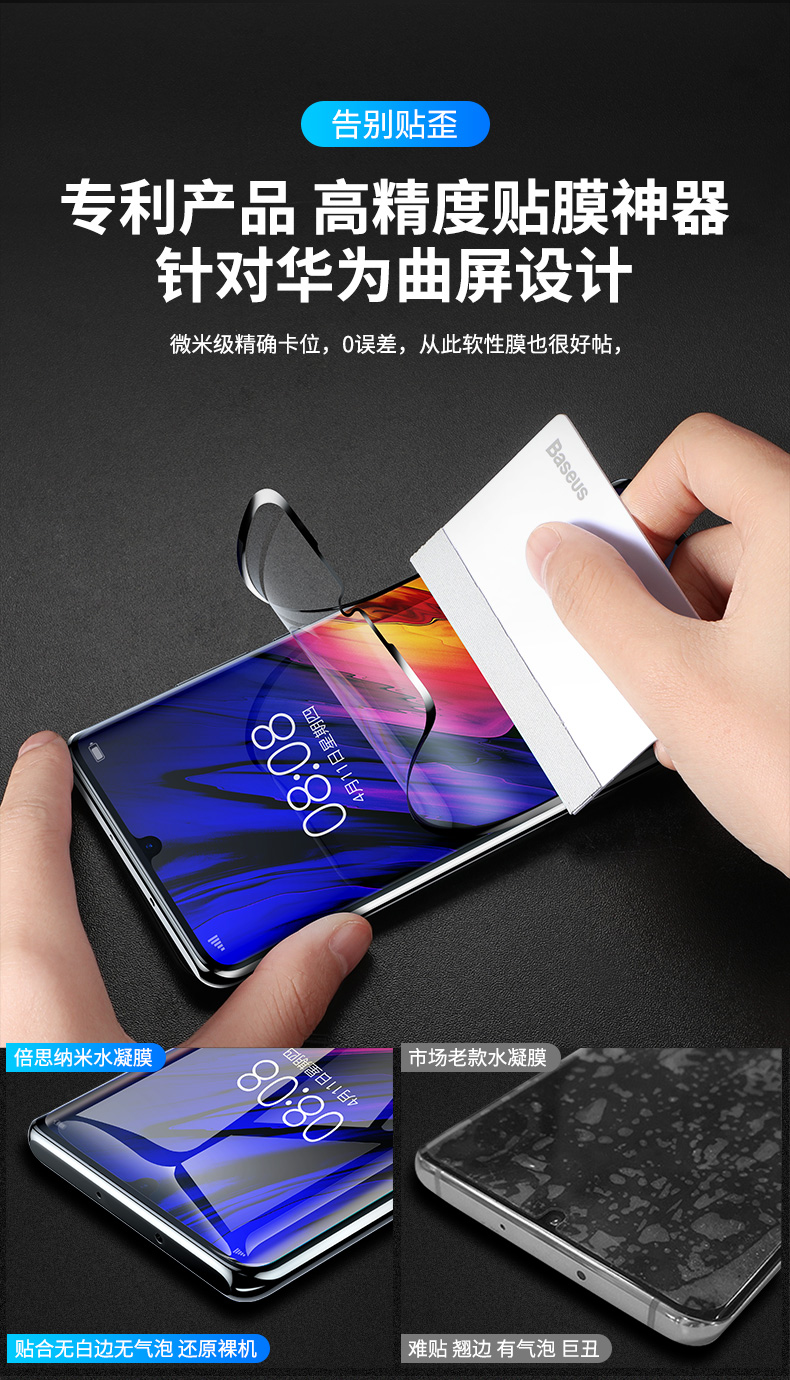 商品名称:倍思 华为p30pro钢化膜p30全屏覆盖mate20手机膜p20原装水凝全包边mate20软膜UV蓝光por防爆屏保曲面无白边pro