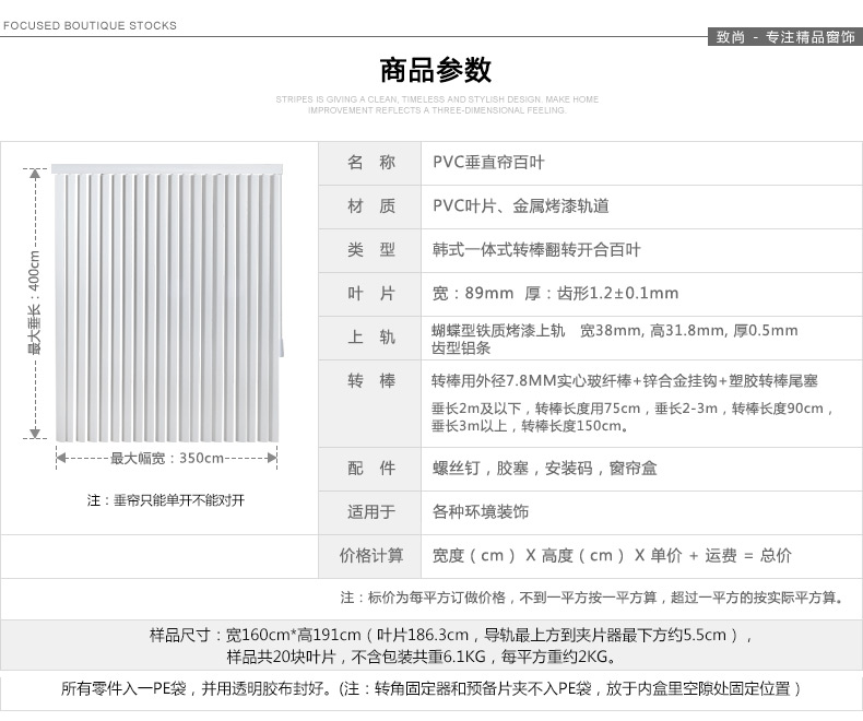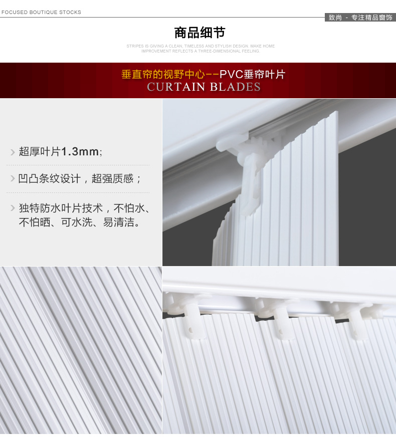 商品名称:致尚 PVC垂直百叶窗帘 转棒式百叶 纹理遮光竖百叶帘客厅隔断帘