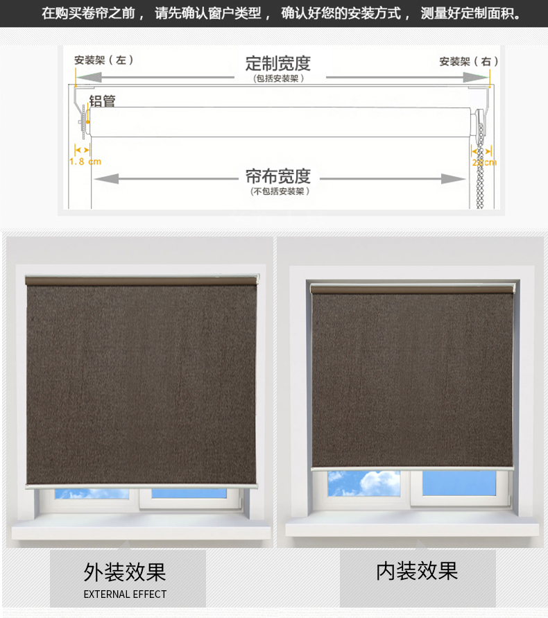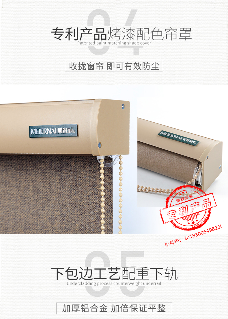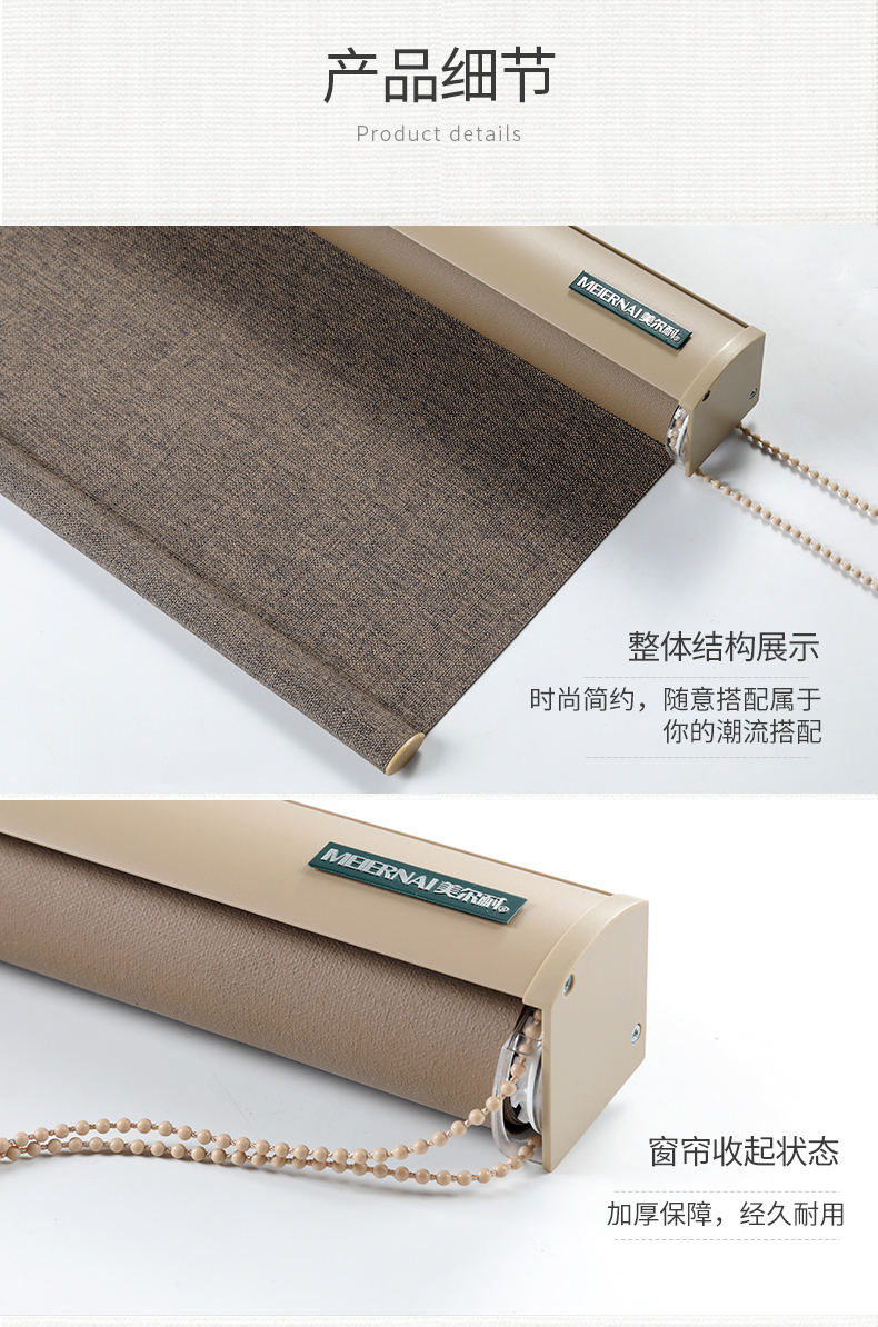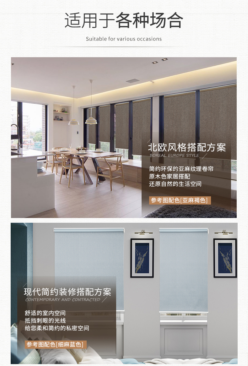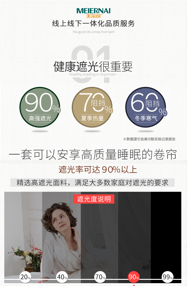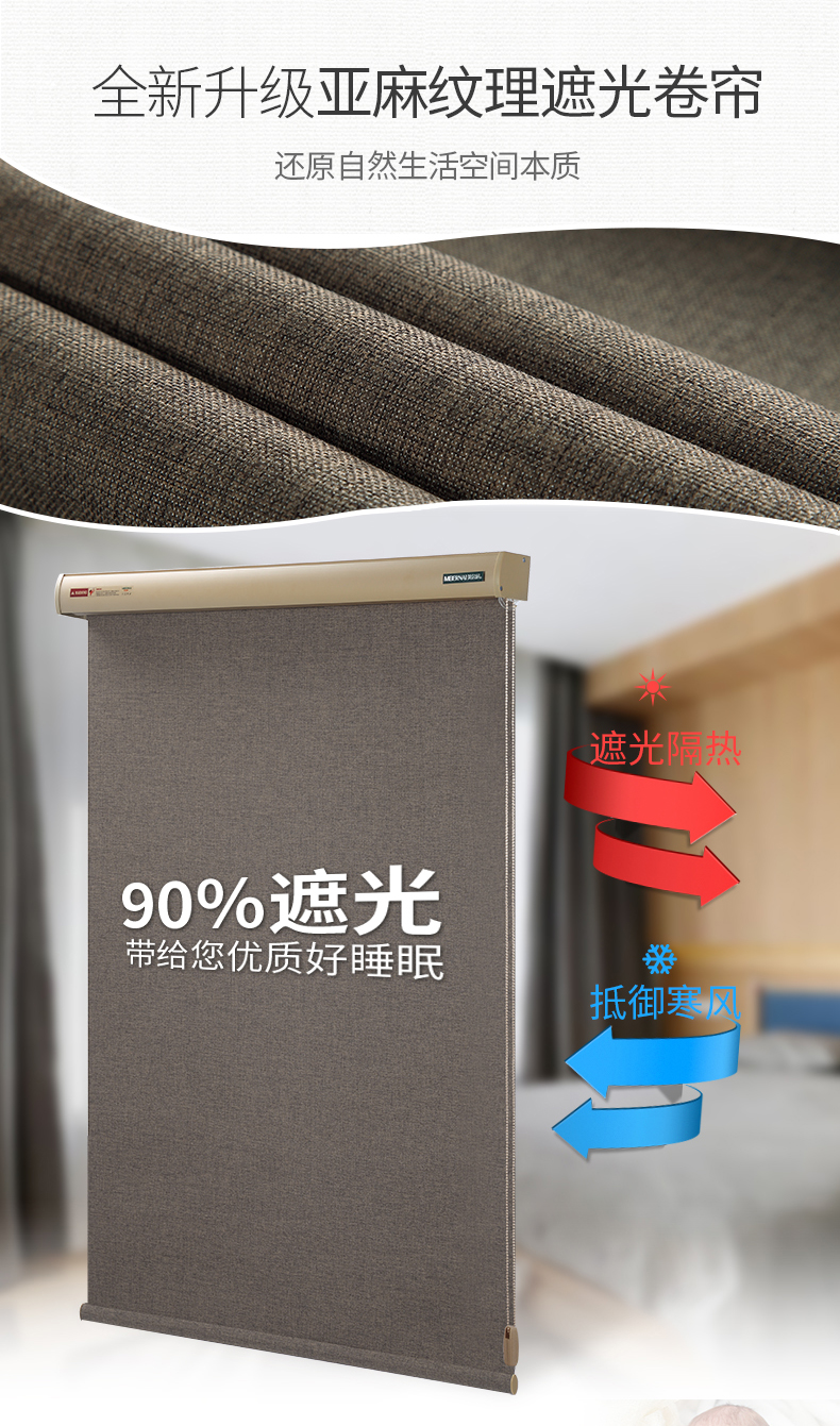 美尔耐 全遮光卷帘窗帘仿亚麻遮阳帘 升降隔热办公室客厅卧室阳台