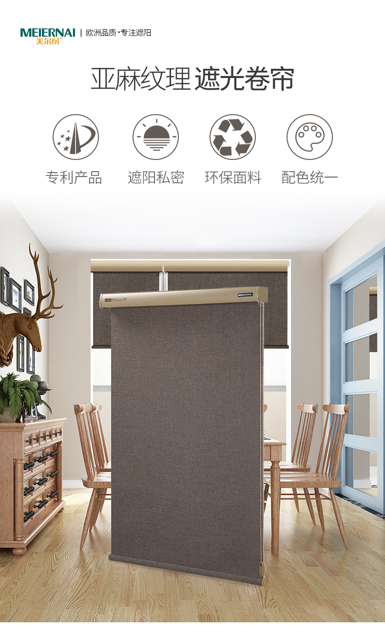 商品名称:美尔耐 全遮光卷帘窗帘仿亚麻遮阳帘 升降隔热办公室客厅卧室阳台