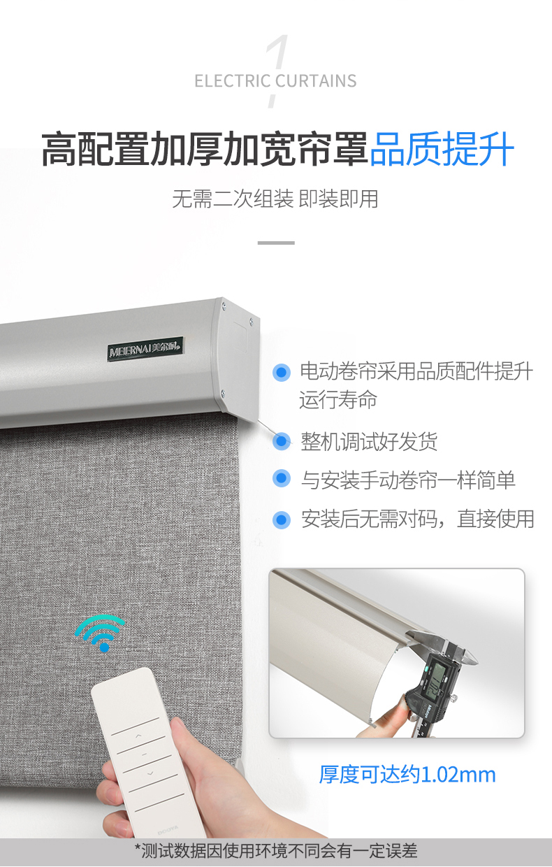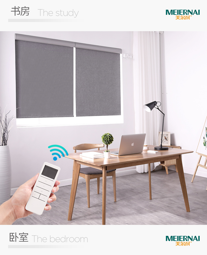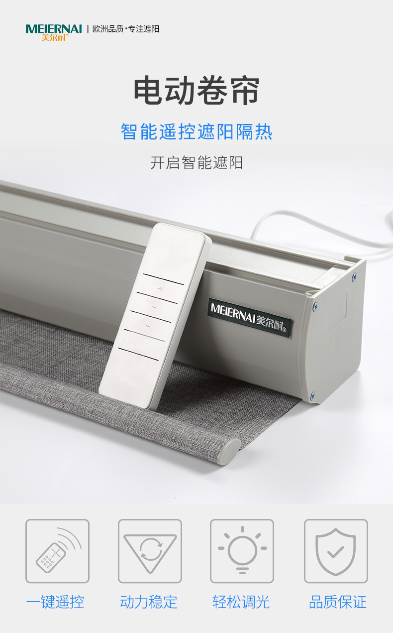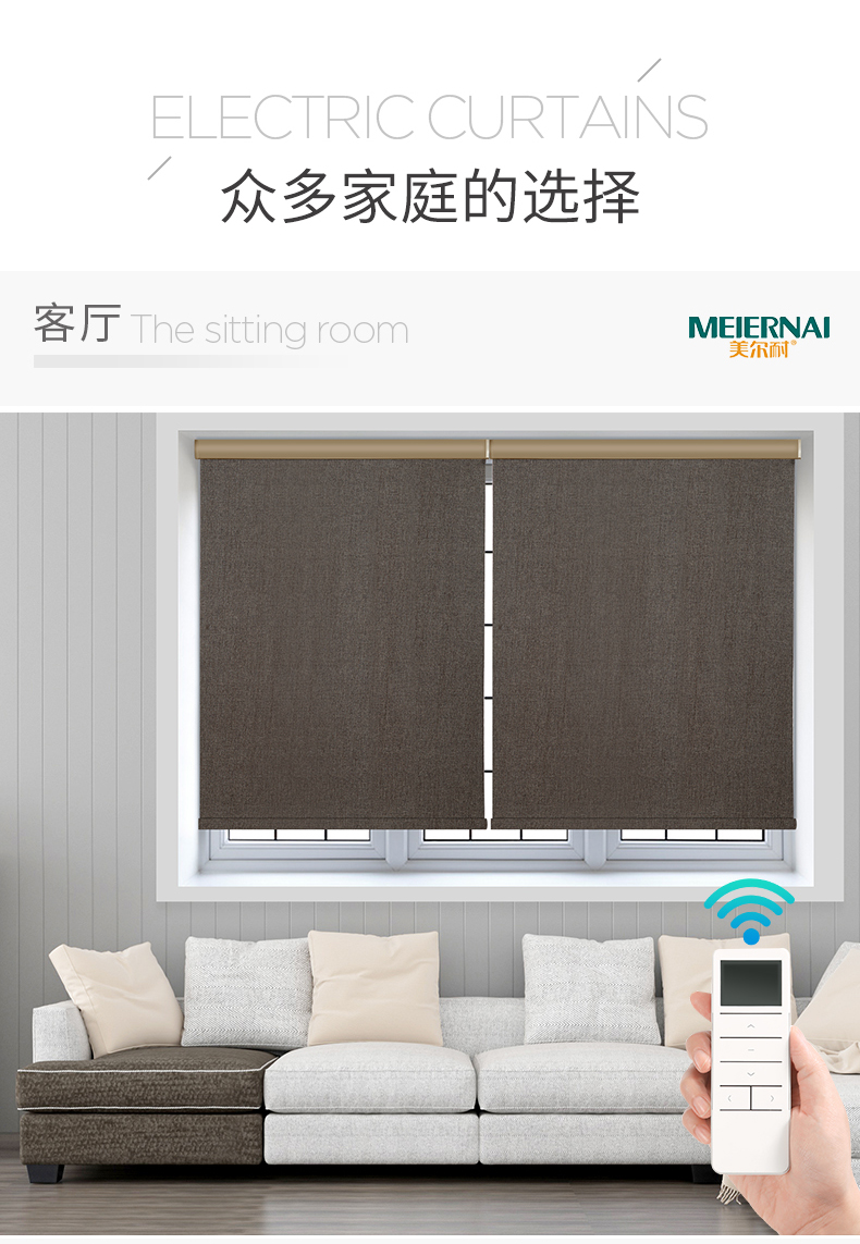 商品名称:美尔耐 布线式电动卷帘窗帘智能无线遥控自动升降全遮光仿亚麻定制