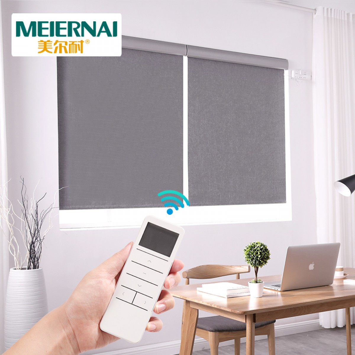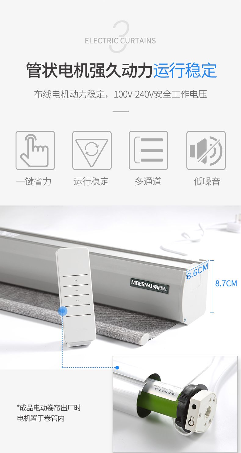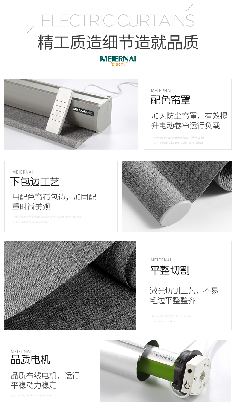 商品名称:美尔耐 布线式电动卷帘窗帘智能无线遥控自动升降全遮光仿亚麻定制