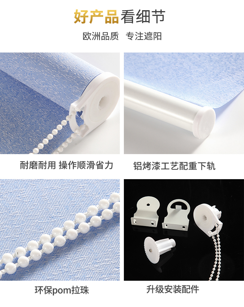 商品名称:美尔耐 提花卷帘窗帘现代简约遮光防水拉珠升降办公室卫生间定制