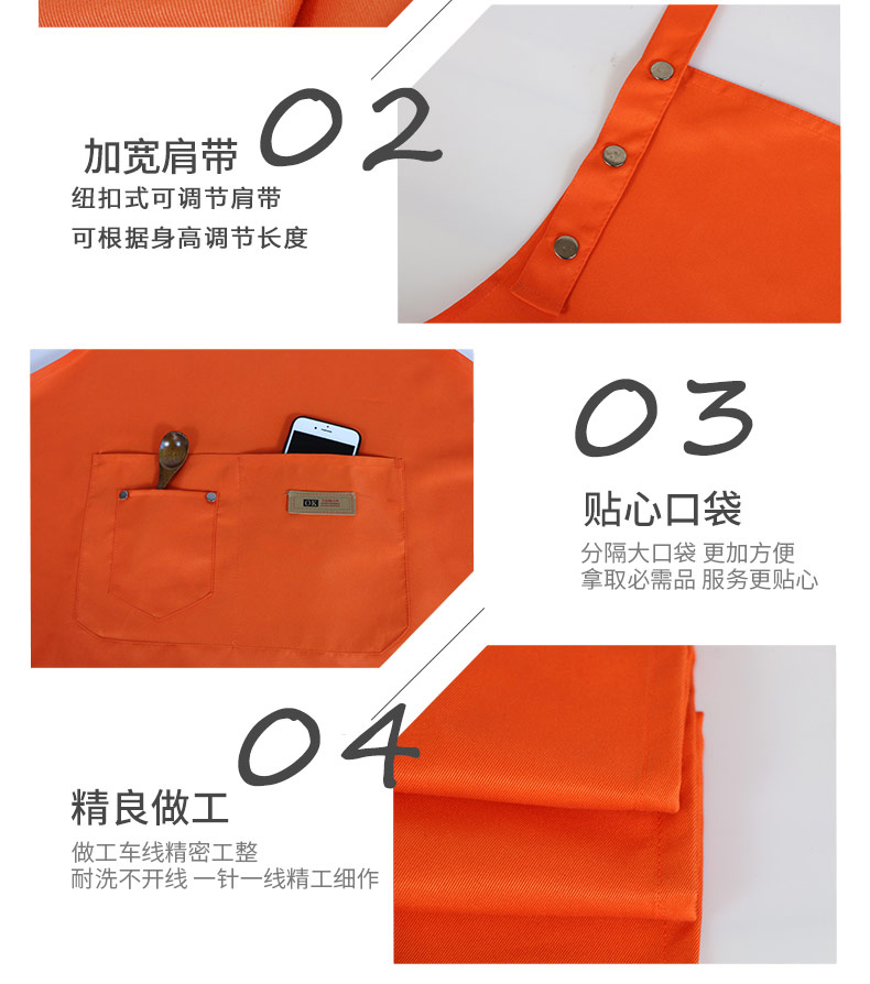 商品名称:国产 围裙定制logo韩版时尚背带式厨房防水成人女奶茶美甲火锅店工作服