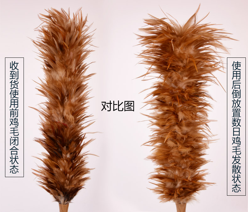 产品介绍 扫除时候害怕灰尘,不仅扫不干净还呛人,遇到毛发、角落就更难清理了。 素一素二除尘掸,方便清洁各个角落,轻松一扫就干净,家务不再累。 推荐理由 天然鸡毛 质地柔韧挺拔,清洁除尘效果更好。 楠竹手柄 外表精致 手感舒适光滑。 轻松抖落灰尘 搓转掸子,灰尘就会轻易的掸落下来。 特别注意 由于运输途中包装,鸡毛会受到挤压,收到货后建议将鸡毛掸子反立6-8天,鸡毛就能自然就会发开了!也可以收到后将毛反向抹一下,或将掸子在太阳下晒一晒,然后鸡毛掸竖立放置羽毛将自然下挂 ,会越来越丰满的。 保养说明 天然鸡毛掸子应经常放在太阳底下晾晒,以防发霉! |