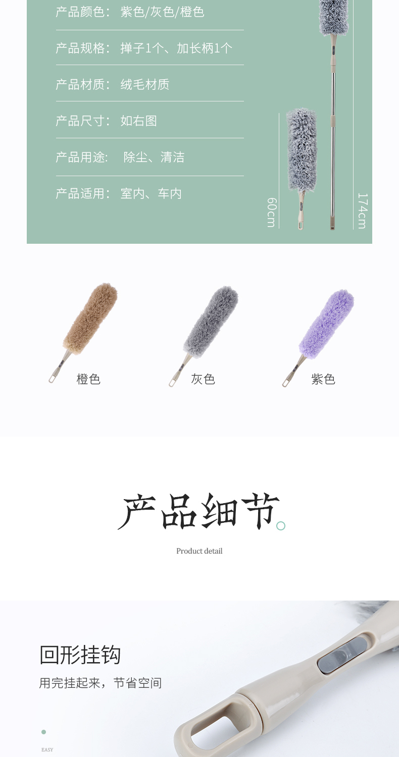 商品名称:国产 鸡毛掸子除尘家用毛毯子清洁扫灰神器可伸缩灰尘禅子加厚车用除尘