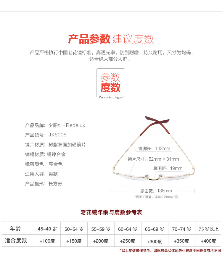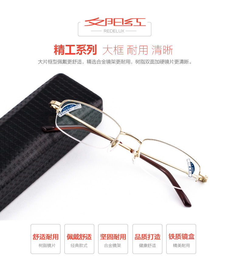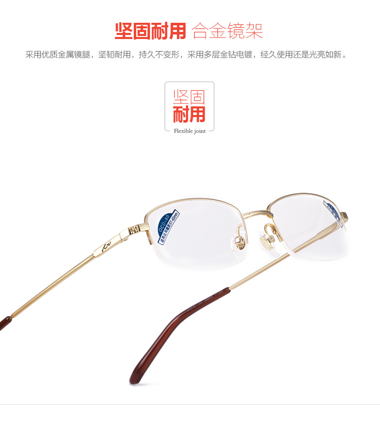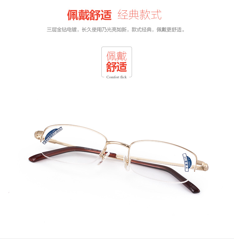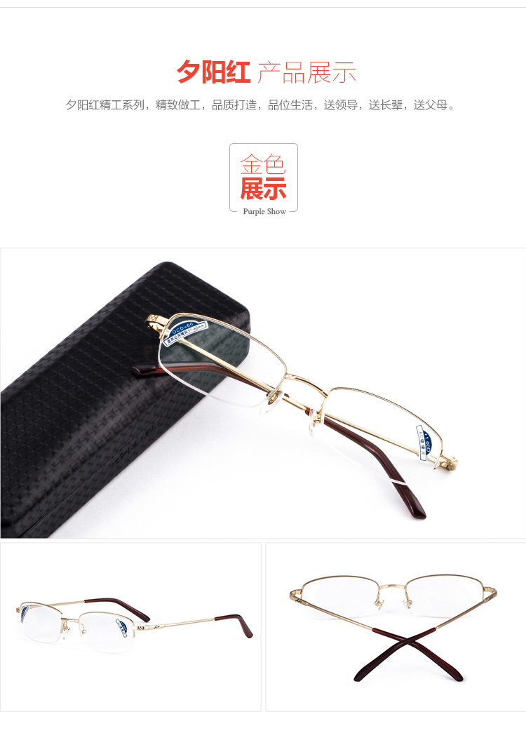 商品名称:夕阳红 品牌男女金属半框老花镜时尚优雅高清老花眼镜JX6005