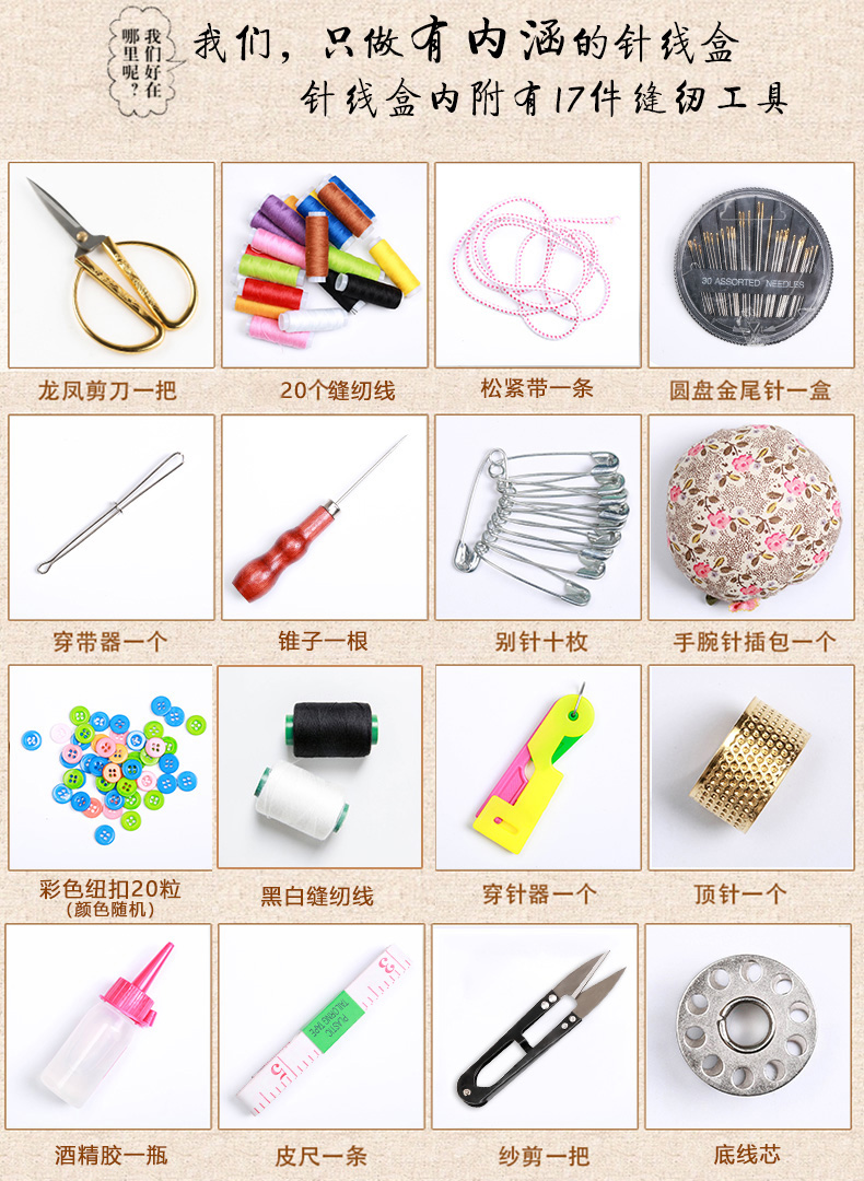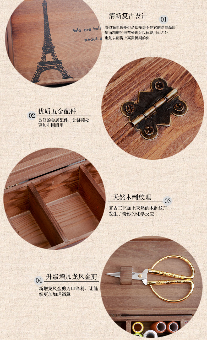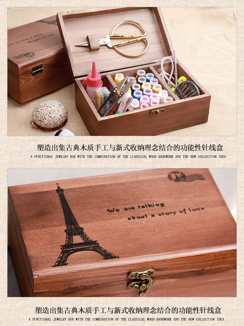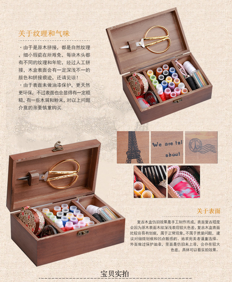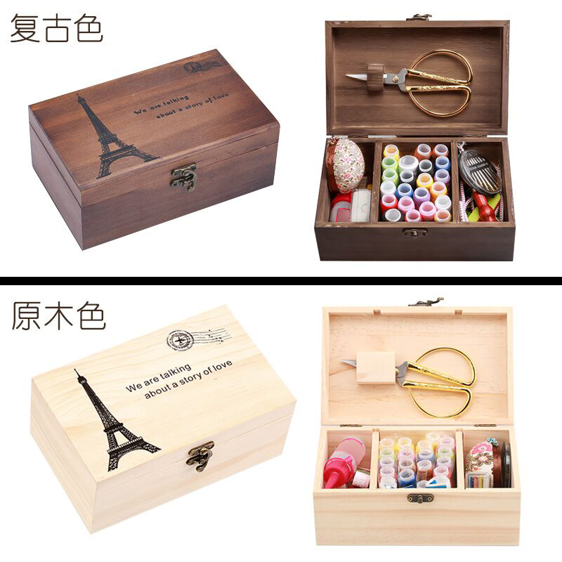 商品名称:国产 复古实木针线盒家用套装收纳盒木质缝纫线针线包整理盒箱大号