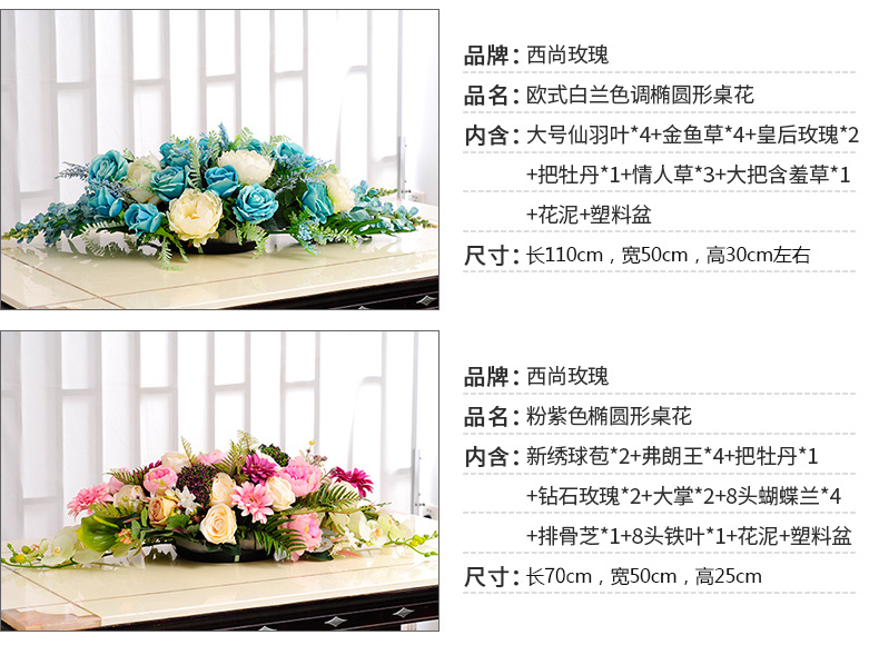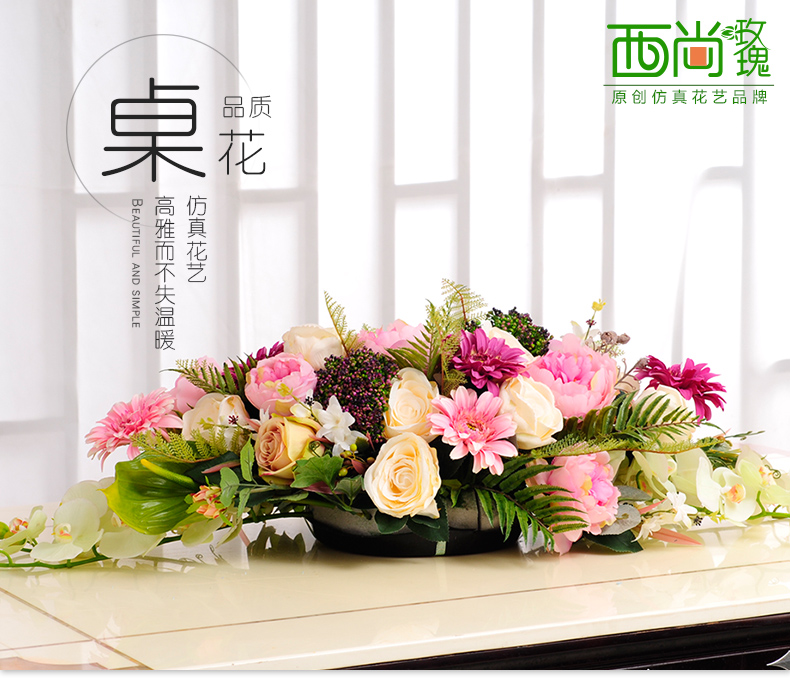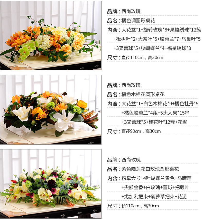 商品名称:国产 会议桌仿真花艺办公室演讲台客厅酒店大圆餐桌中间装饰花假花摆设