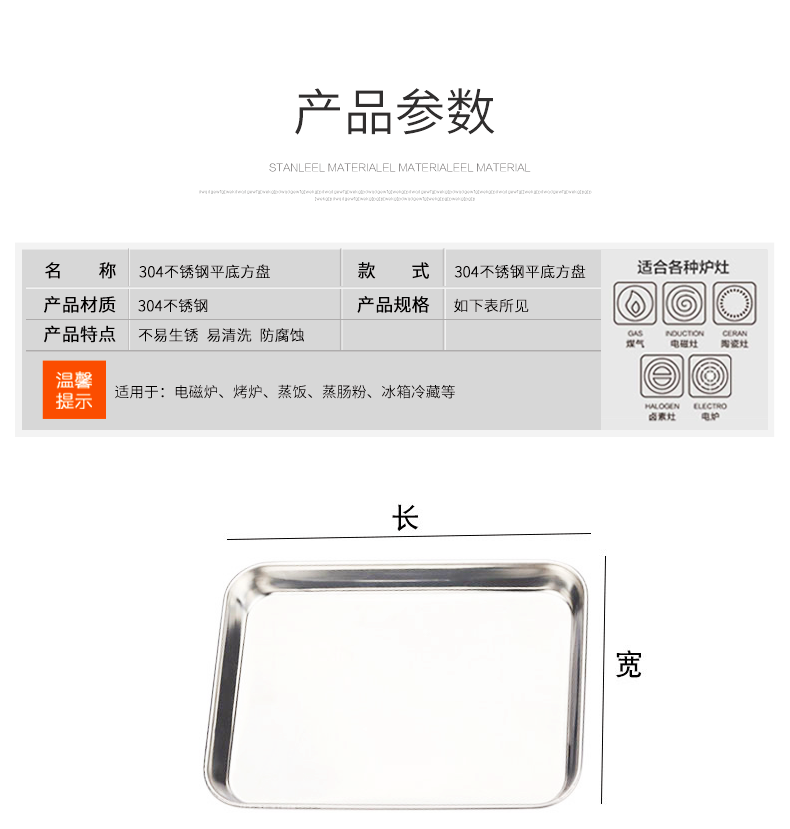 商品名称:国产 304不锈钢方盘 医用托盘长方形