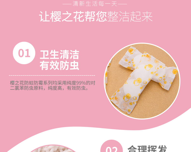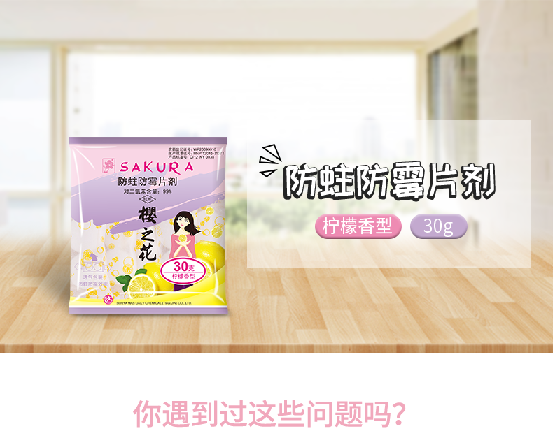 商品名称:樱之花 樟脑丸球防蛀防霉片去味柠檬香衣柜驱虫防蟑螂8袋