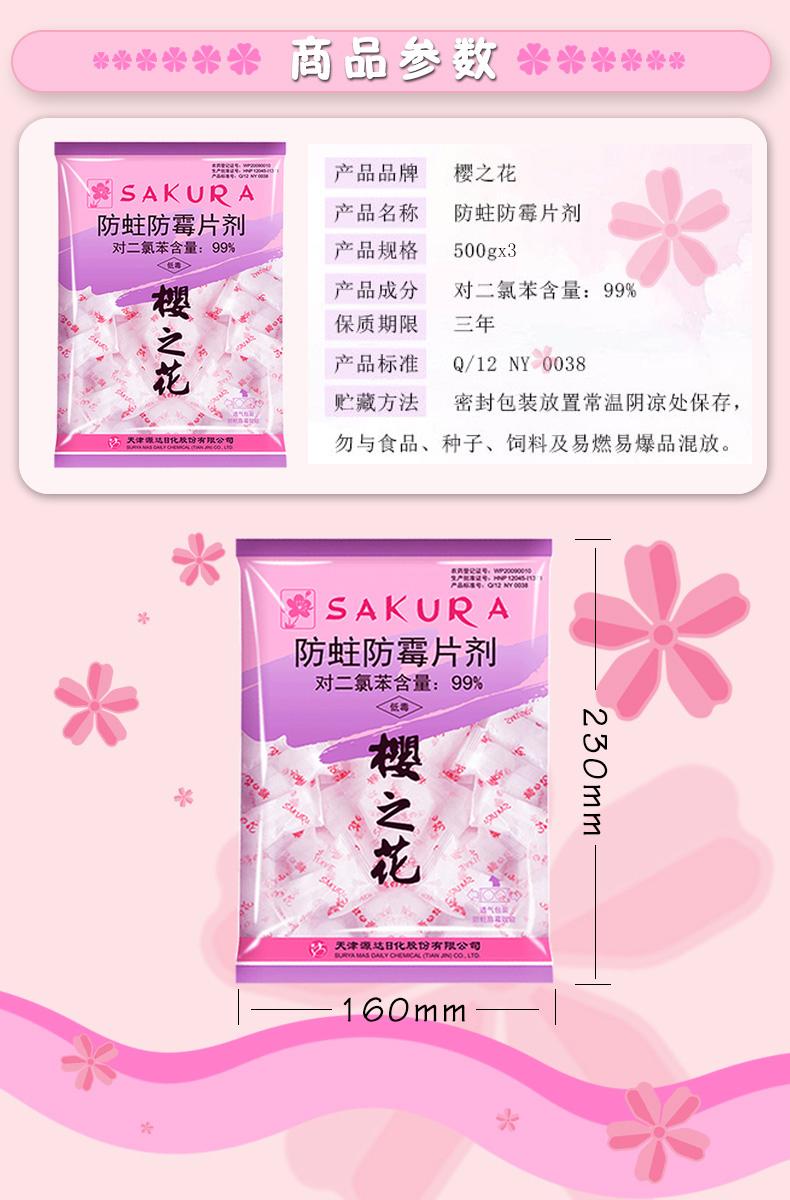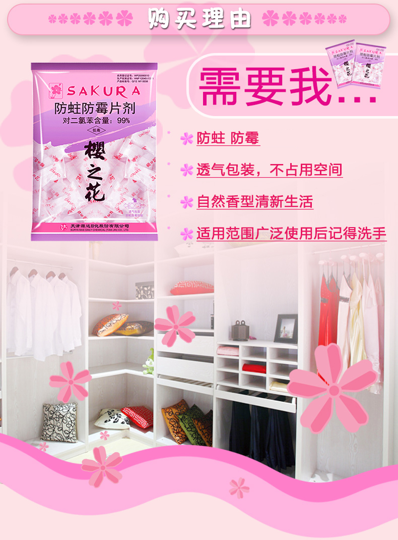 商品名称:樱之花 防蛀防霉片剂防虫驱虫1500g衣柜防潮除味芳香去味樟脑丸
