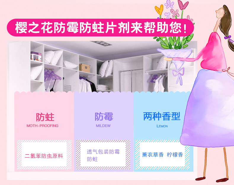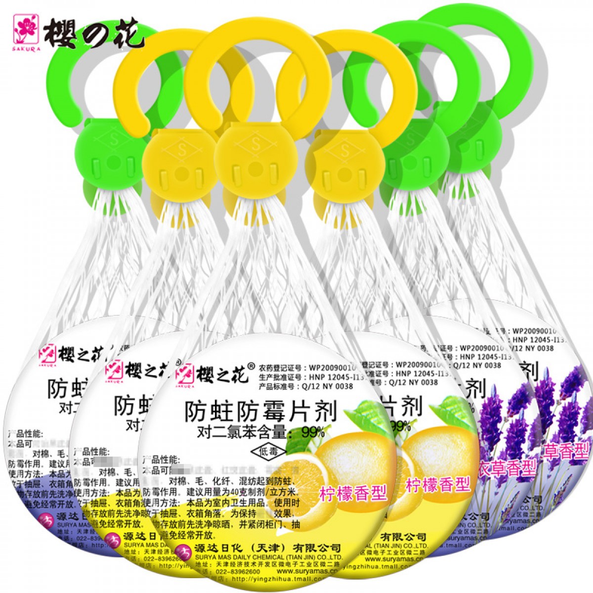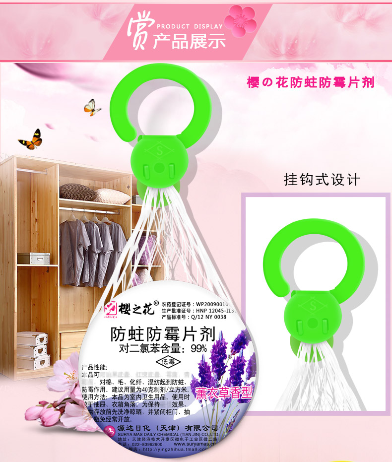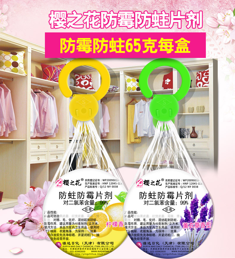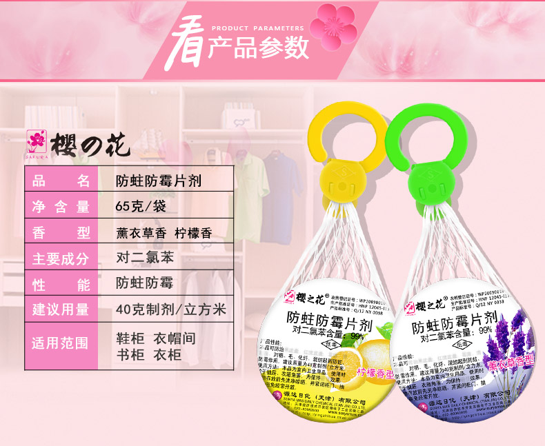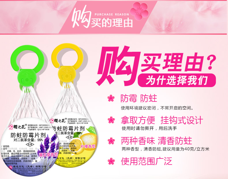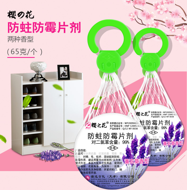 商品名称:樱之花 防蛀防霉片樟脑丸6个组合 挂网式卫生球樟脑家用衣柜防虫蛀