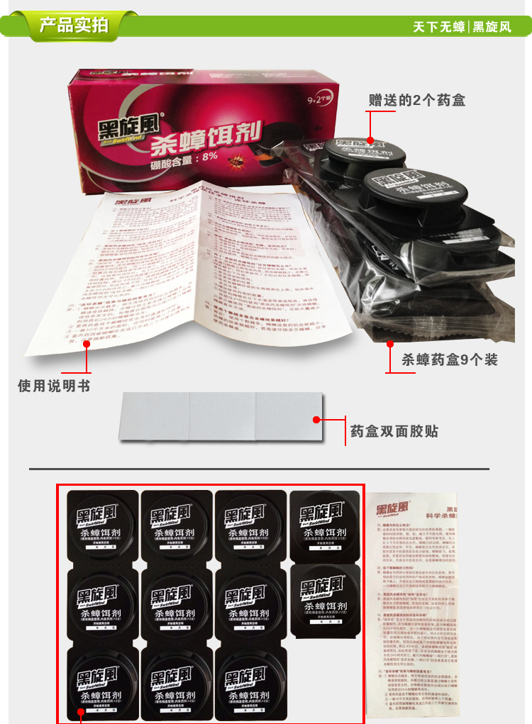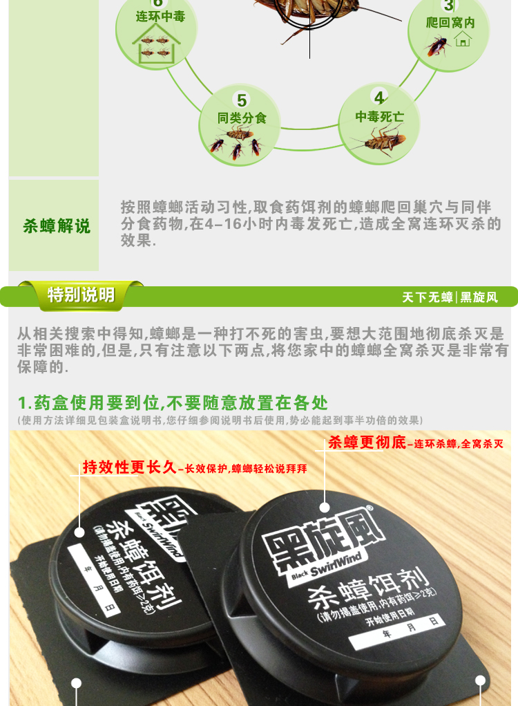 商品名称:黑旋风 蟑螂药蟑螂屋2盒装蟑螂胶饵蟑螂贴杀虫剂