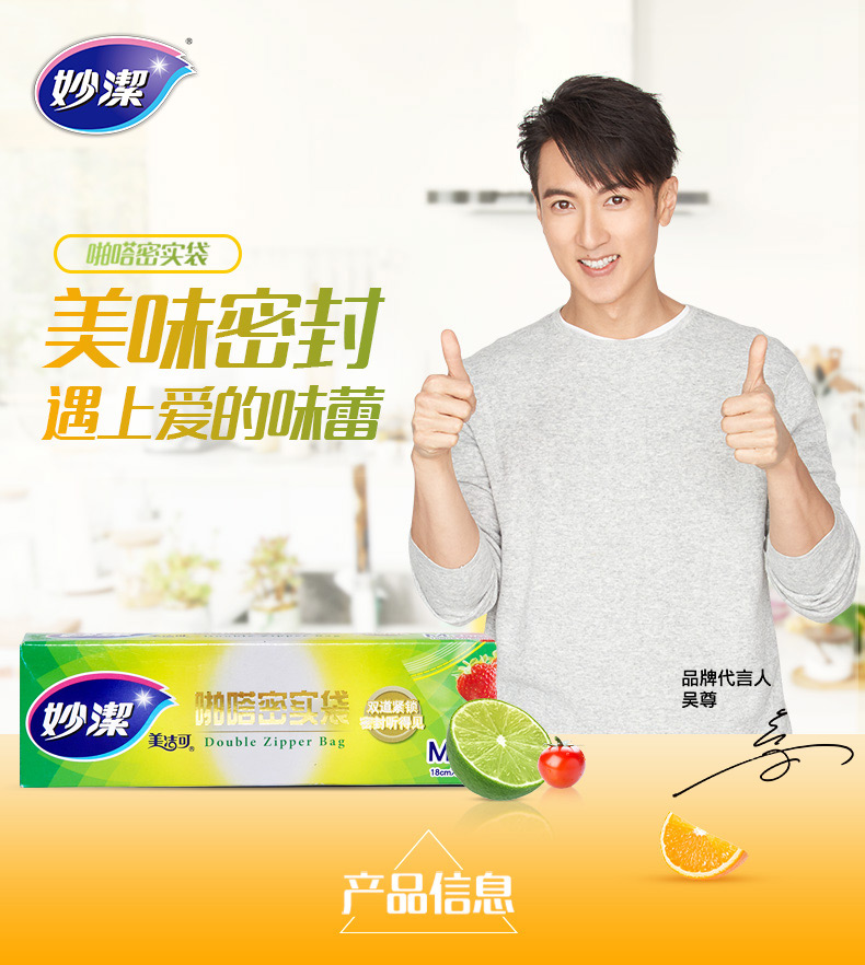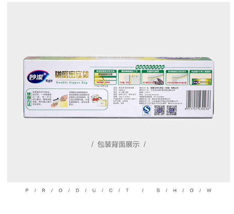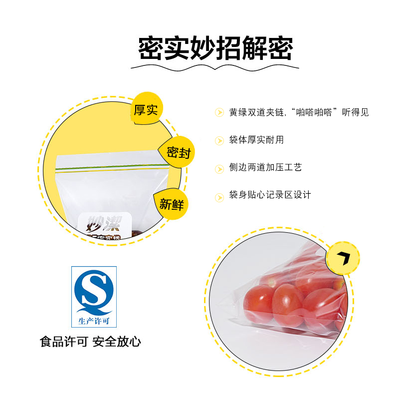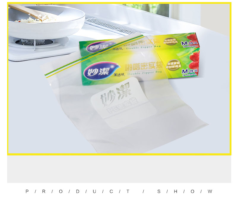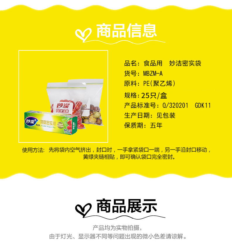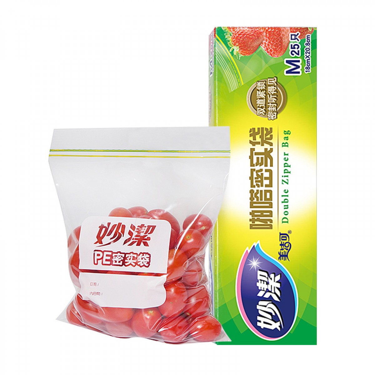商品名称:妙洁 密实食品密封保鲜袋中号25只耐热收纳冷冻零食袋