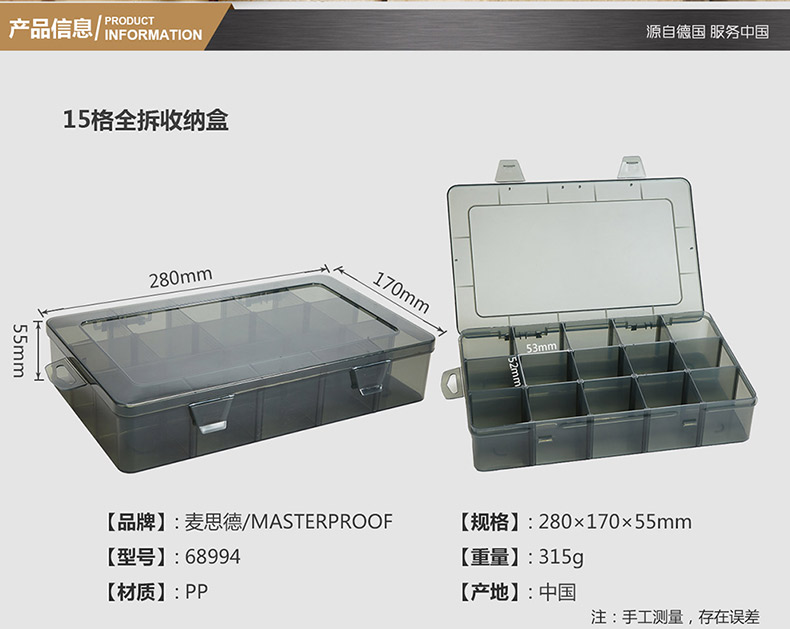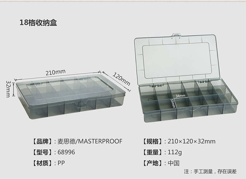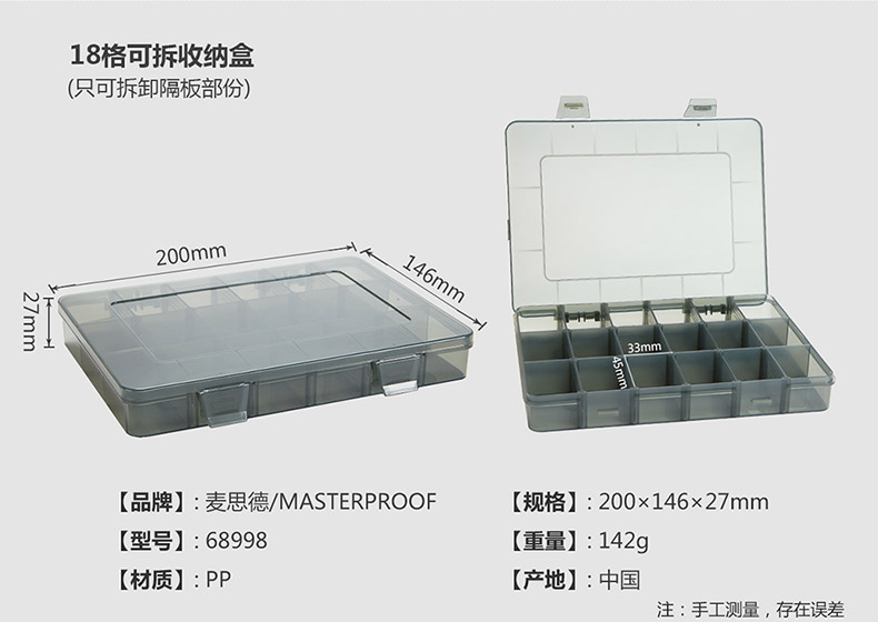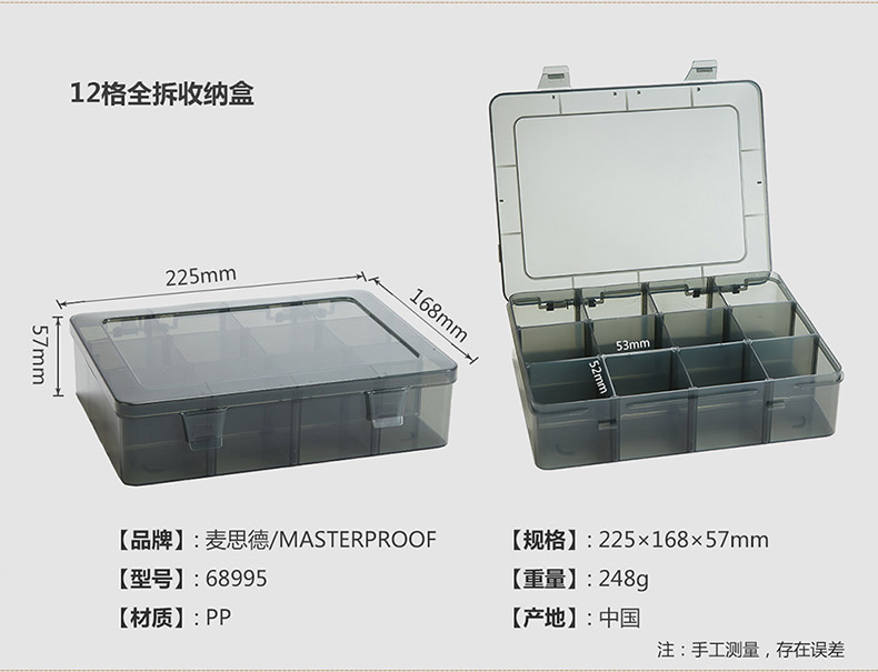 商品名称:麦思德 塑料手提式工具盒零件盒螺丝收纳盒电子元件盒分格箱物料盒