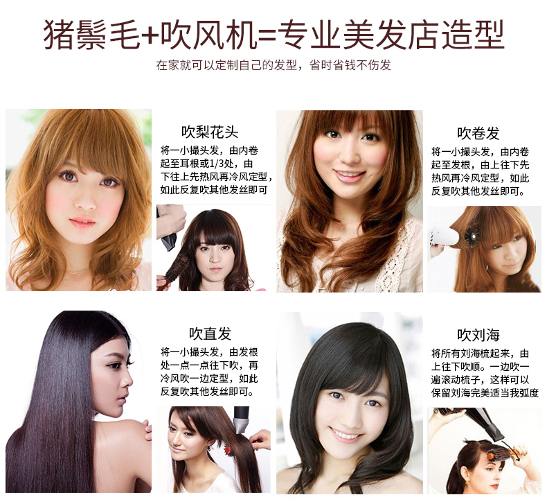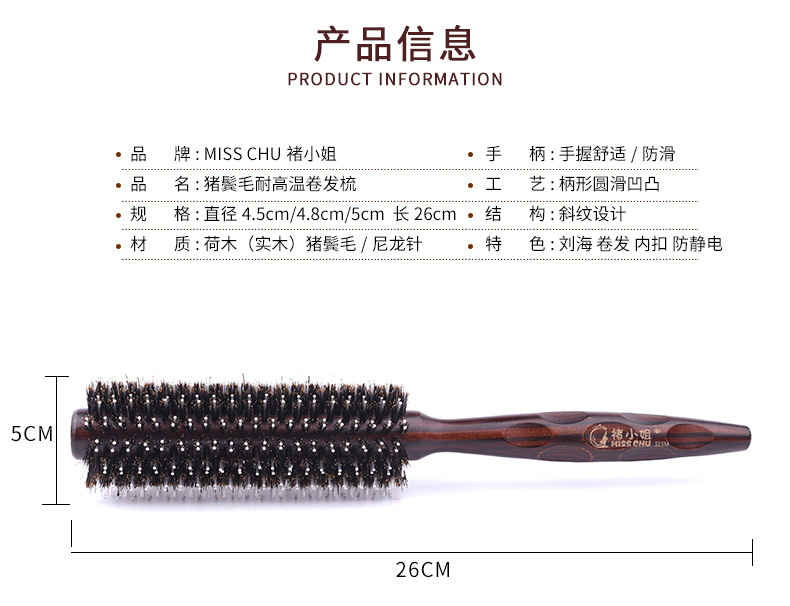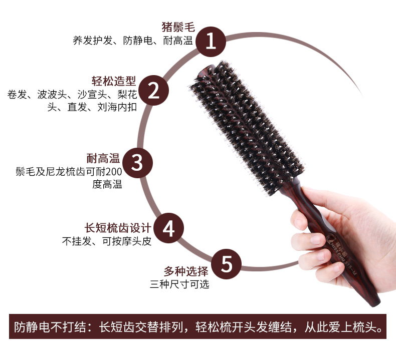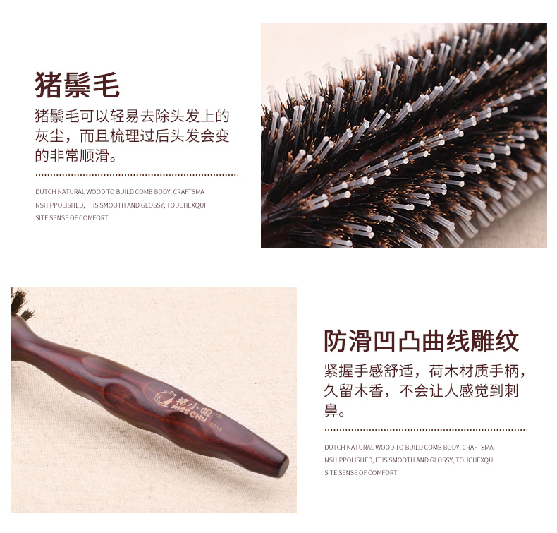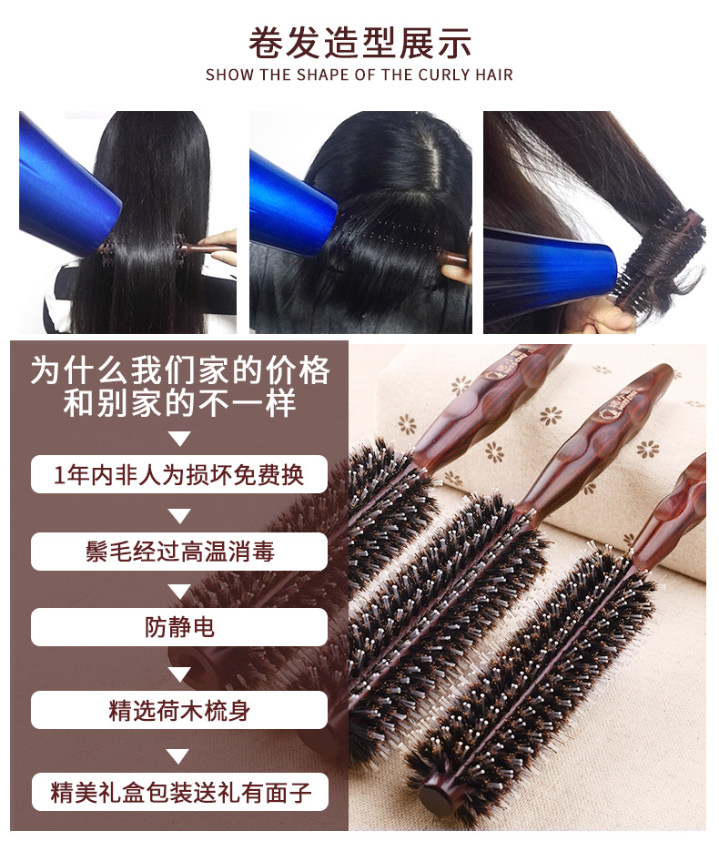 商品名称:褚小姐 猪鬃毛梳子 卷发梳女 内扣梳子女家用直发卷发滚梳发廊美业