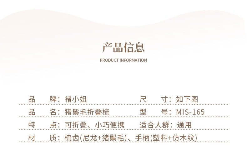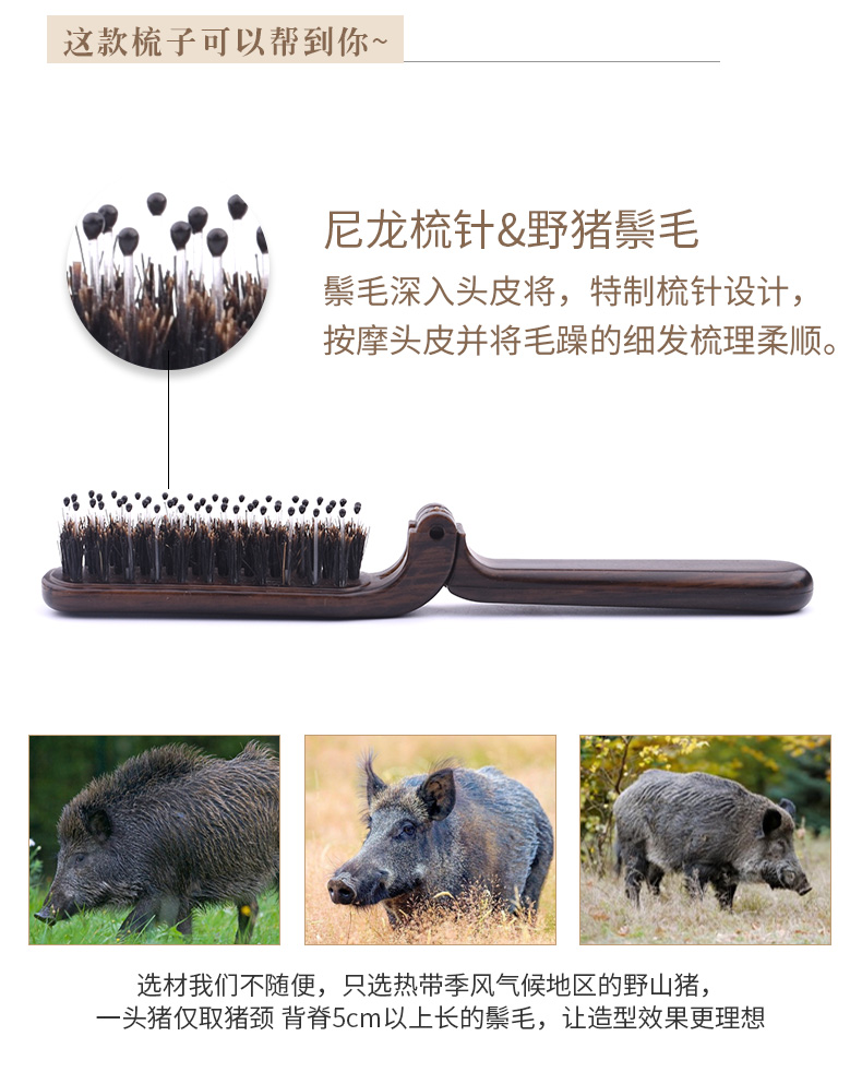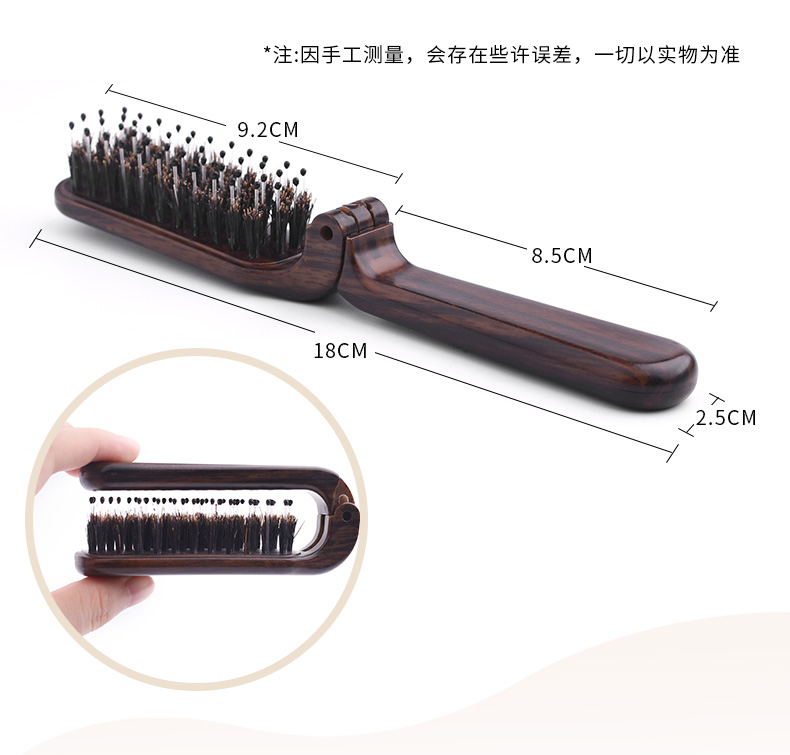 商品名称:褚小姐 折叠梳子女家用猪鬃毛梳子卷发梳旅行便携梳子宽齿梳随身带