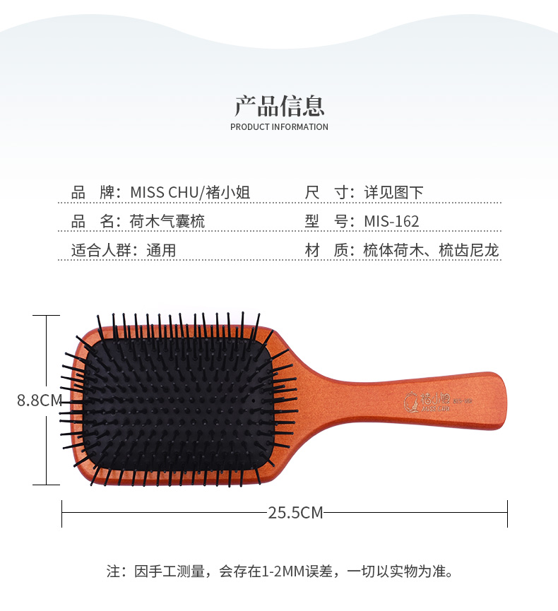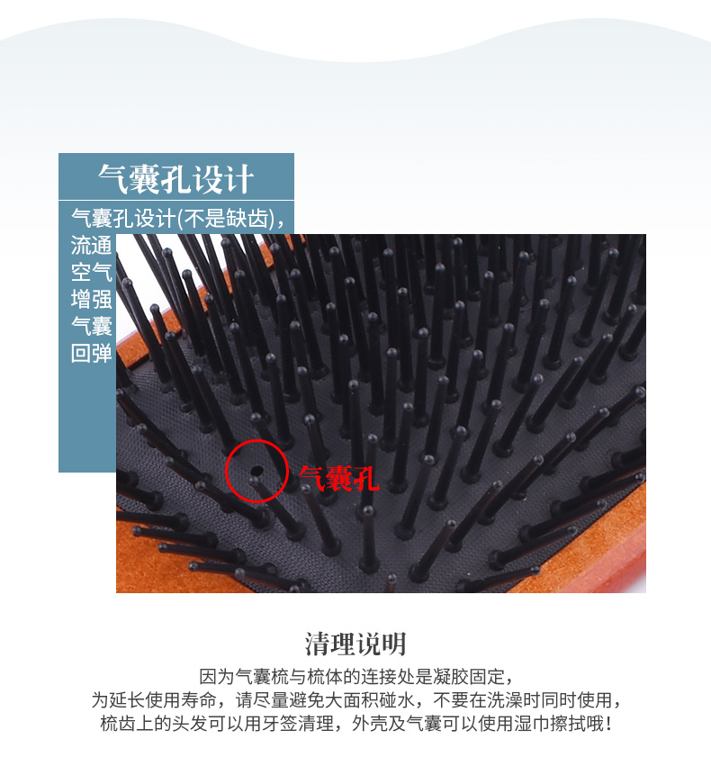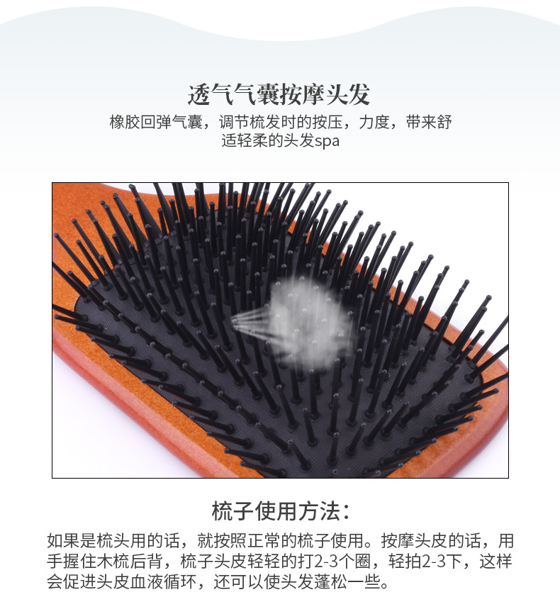 商品名称:褚小姐 梳子 家用气垫梳子卷发梳子按摩梳子头部经络梳气囊梳木梳