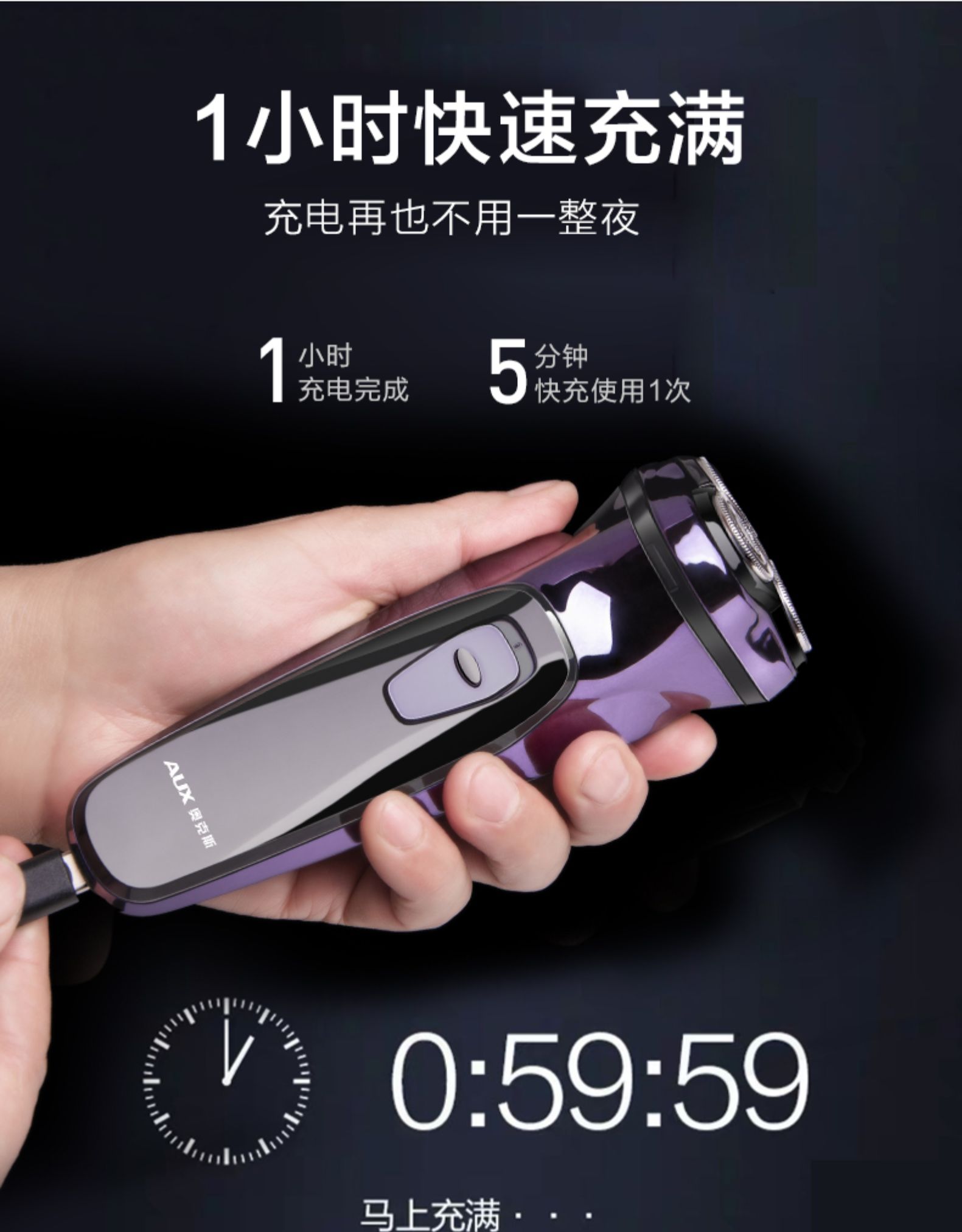 商品名称:奥克斯 剃须刀电动刮胡刀男士充电式须刨胡须刀头水洗智能刮胡子刀