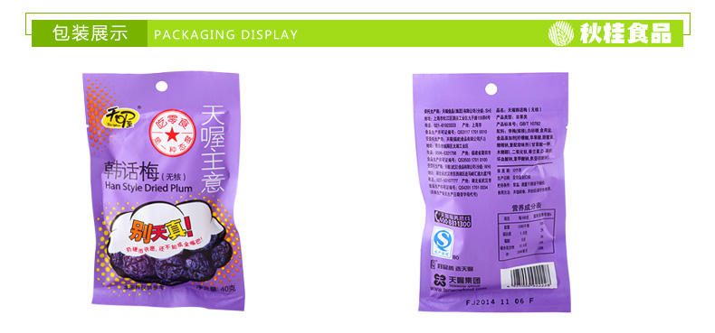 商品名称:天喔 主意韩话梅无核40g 果敢果脯蜜饯 特产小吃零食品袋装