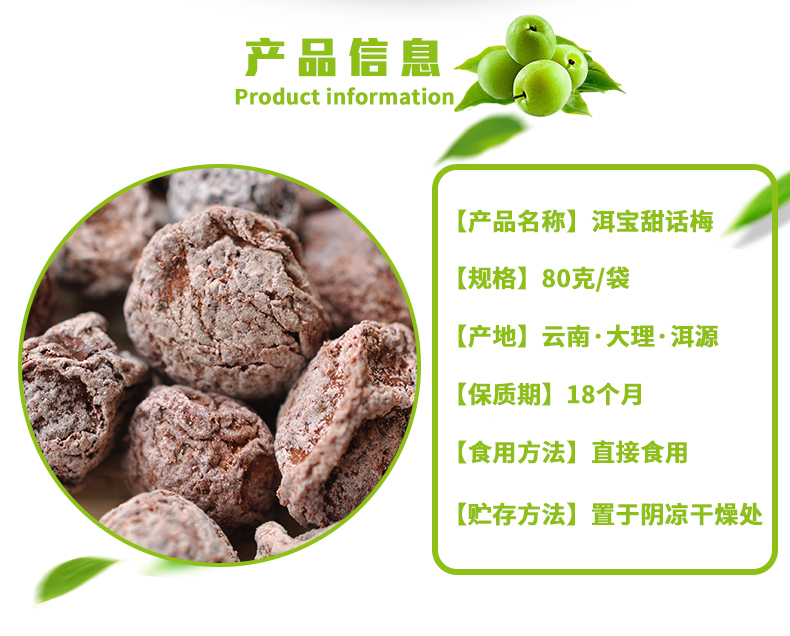 商品名称:国产 大理洱宝话梅80g小包装 咸话梅正宗 零食话梅干甜话梅果脯