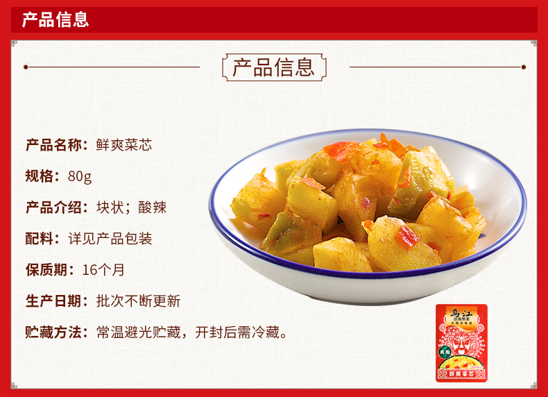 商品名称:乌江 涪陵榨菜鲜爽菜芯 80g