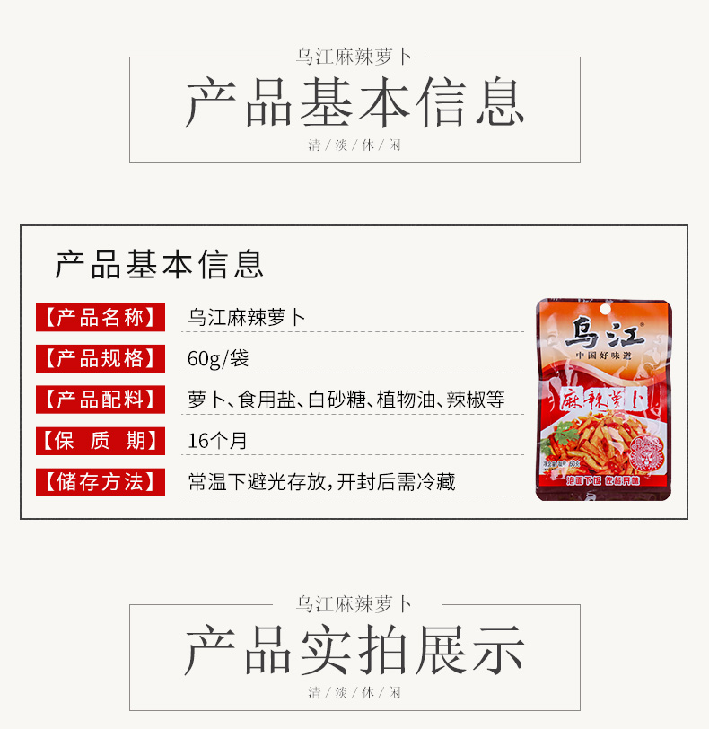 商品名称:乌江 麻辣萝卜干麻辣香嫩 60g