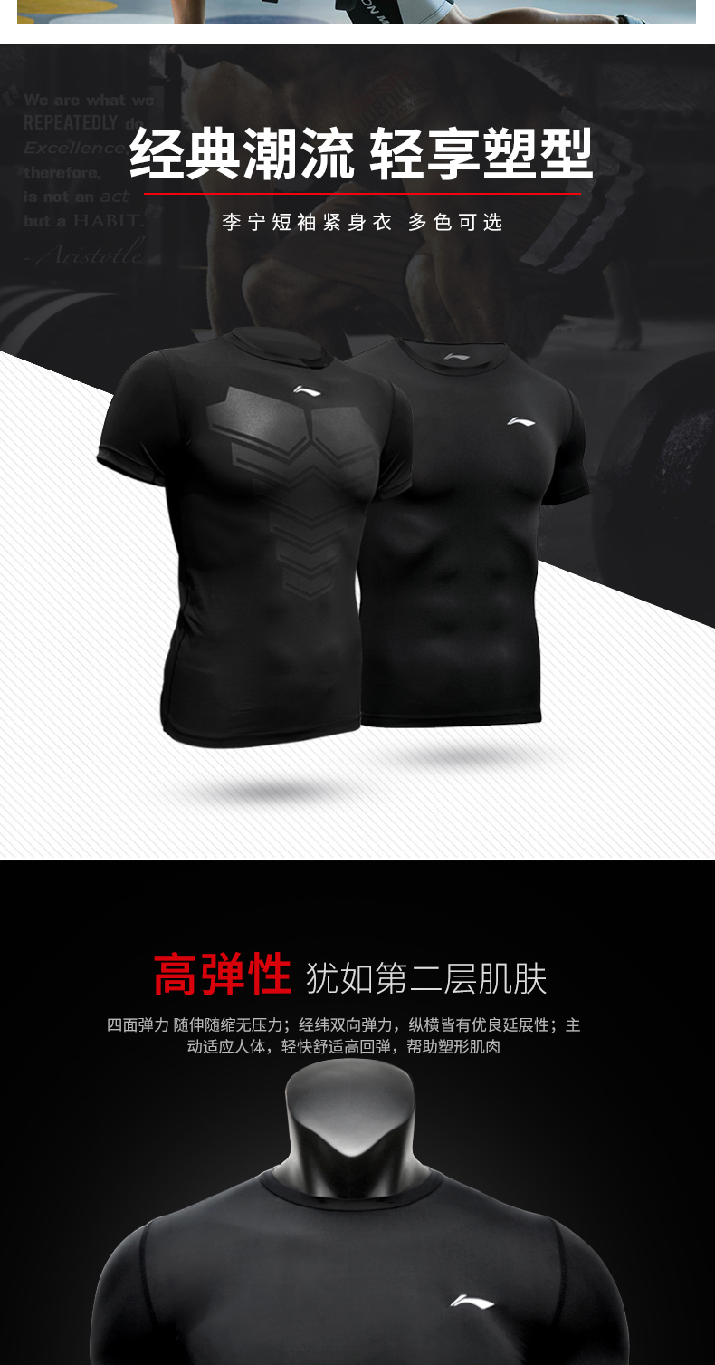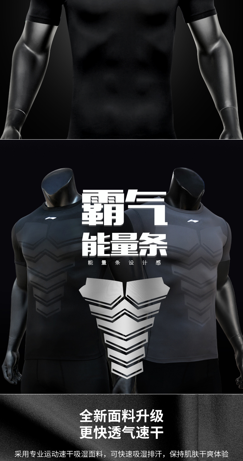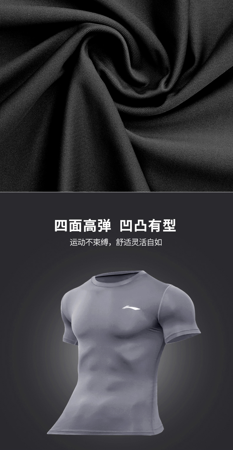 商品名称:李宁 健身衣男健身服运动紧身衣健身房训练压缩衣速干圆领短袖上衣AUDL103