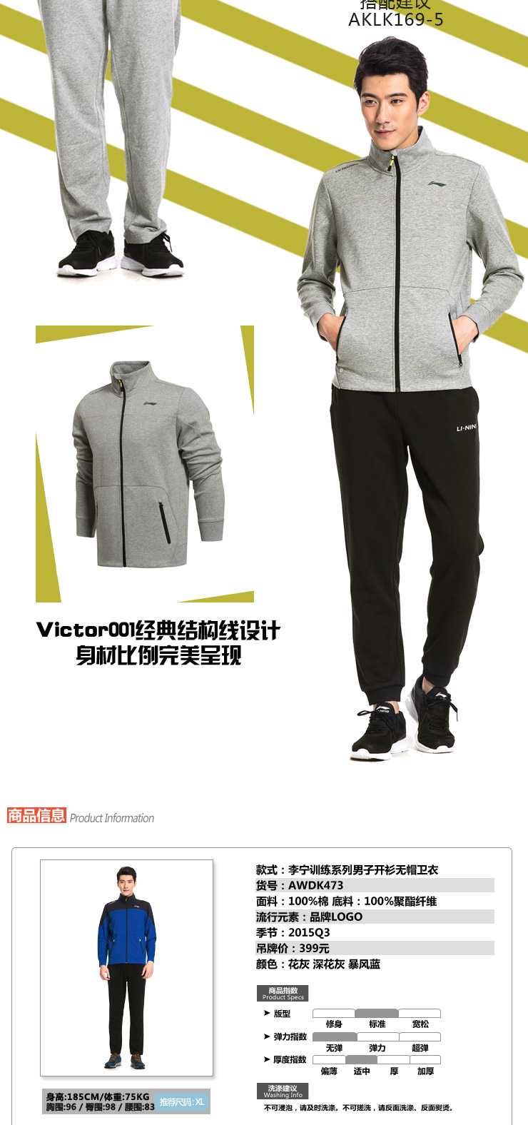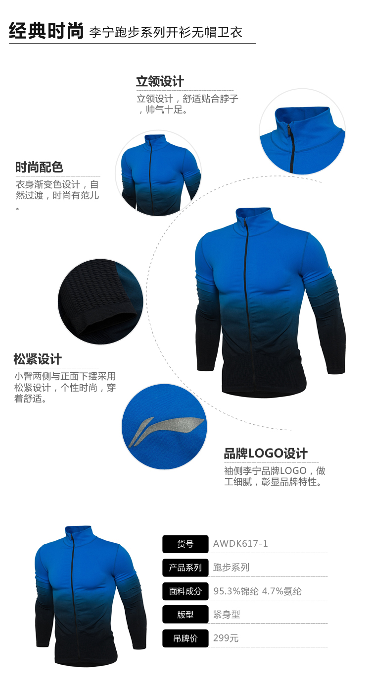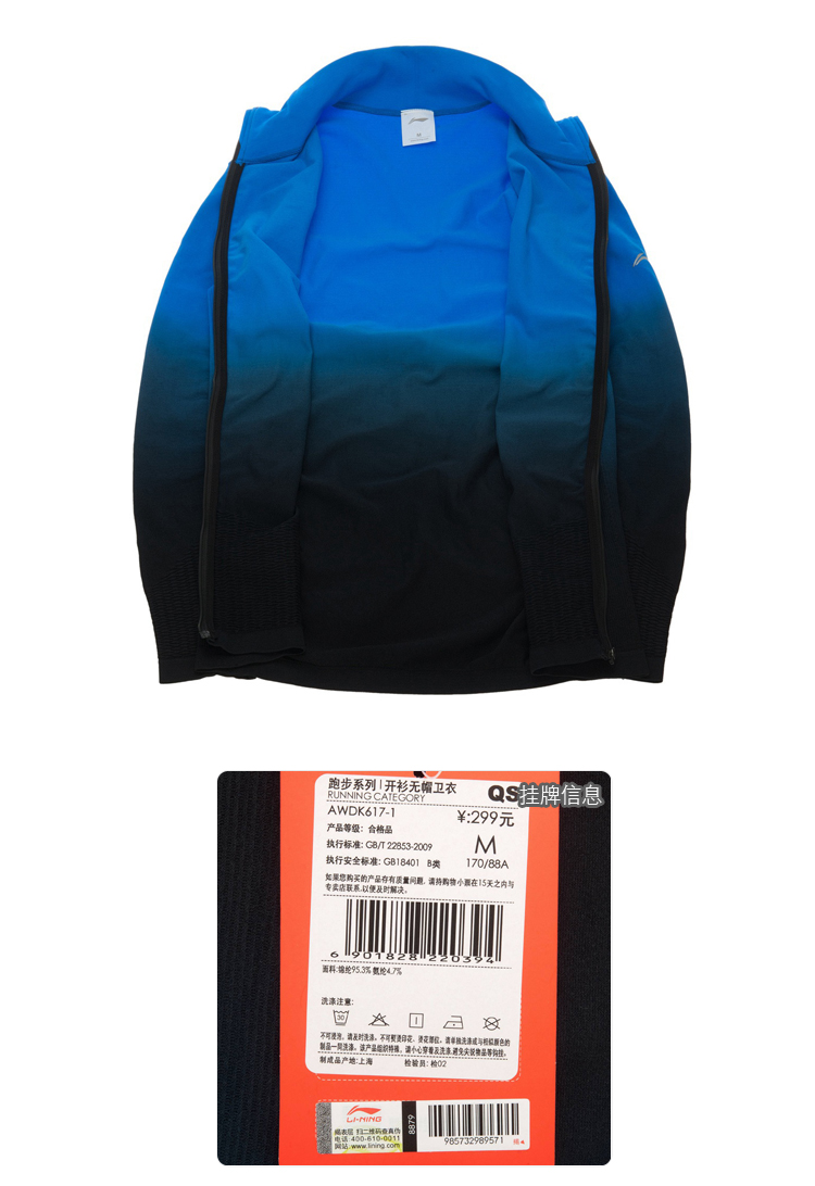 商品名称:李宁 运动外套男装秋季训练运动休闲简约开衫夹克 AWDK473