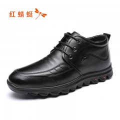 红蜻蜓 冬季新品青年潮流高帮休闲鞋真皮保暖男棉鞋冬皮鞋