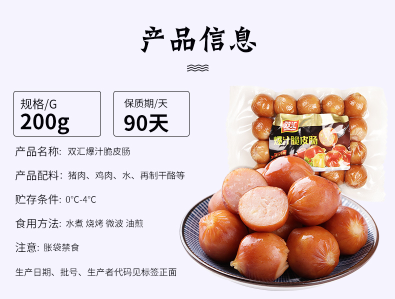 商品名称:双汇 爆汁脆皮肠芝士200g即食火腿肠煎炸小零食休闲小吃