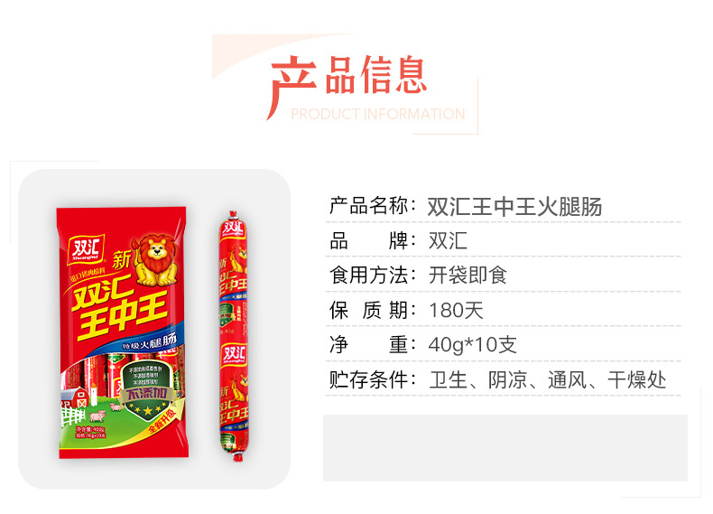 商品名称:双汇 王中王火腿肠400g香肠肉类即食休闲零食小吃速食泡面拍档