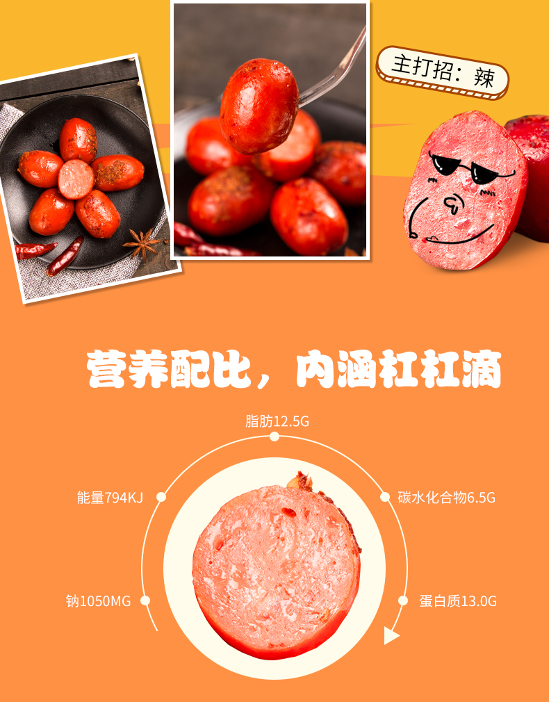 商品名称:双汇 一口Q香辣肠40g*8即 食火腿肠小零食休闲小吃