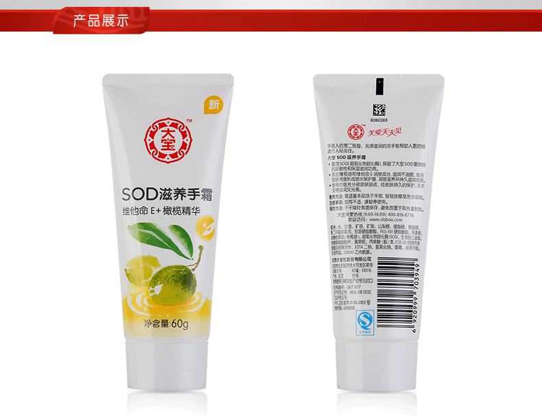 商品名称:大宝SOD蜜滋养护手霜60g抹手霜男女滋润保湿补水擦抹嫩手油 2瓶装