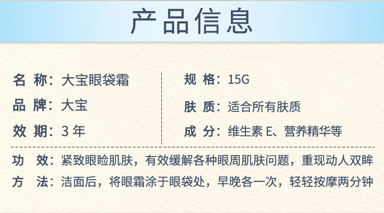 商品名称:大宝 护眼霜去眼袋霜女紧致抗皱细纹男士土专用眼纹男用眼代霜