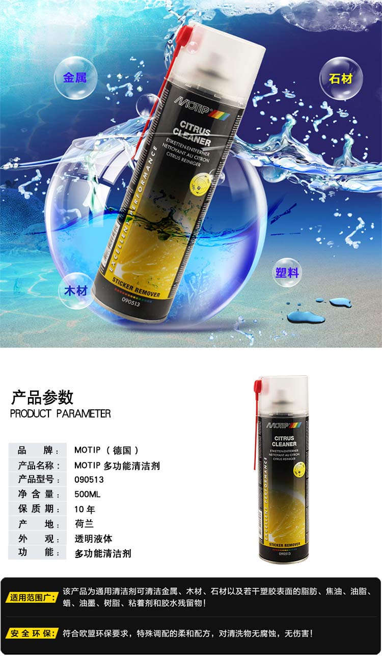 商品名称:MOTIP 汽车多功能清洁剂家用车用油污焦油树脂虫胶双面胶不干胶痕清洁剂 原装进口