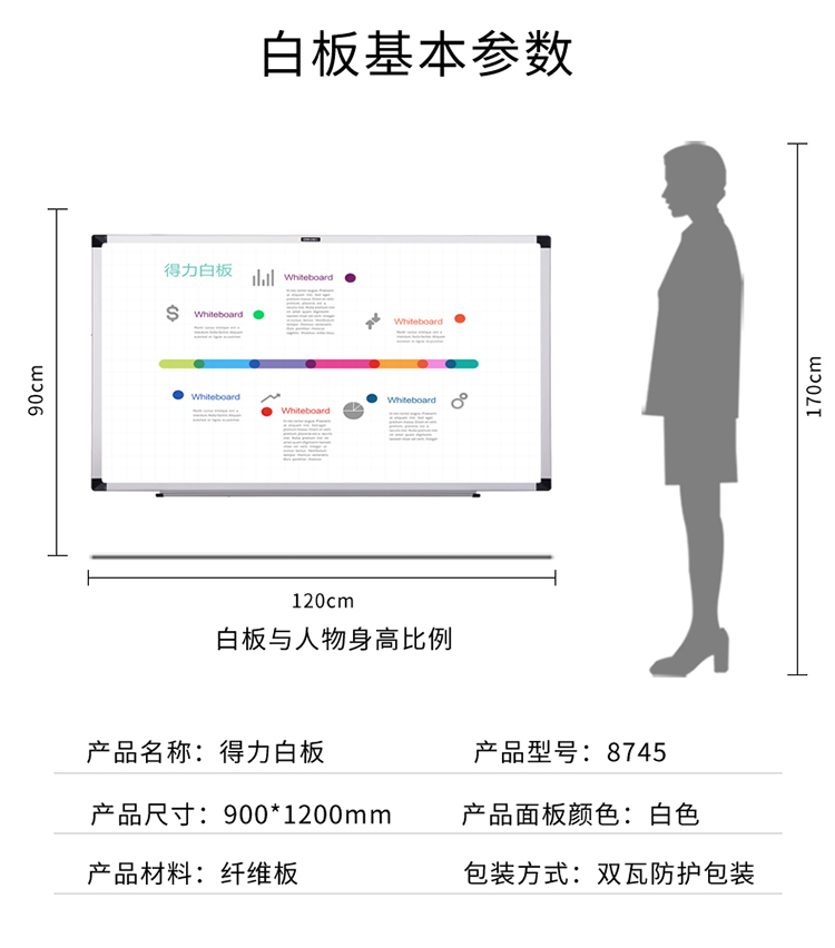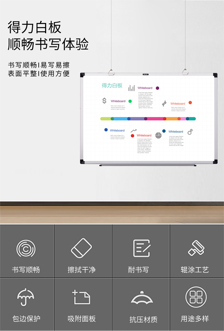 商品名称:得力 120*90cm磁性办公教学会议暗格线挂式白板悬挂写字板8745