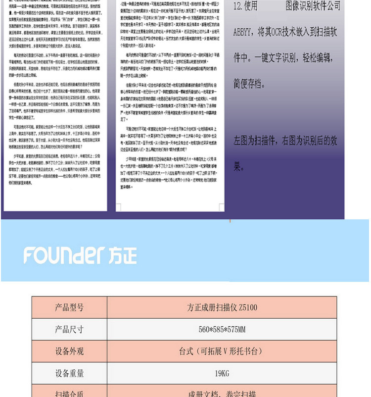 商品名称:方正/Founder 高拍仪书籍扫描仪1000万像素 Z5100