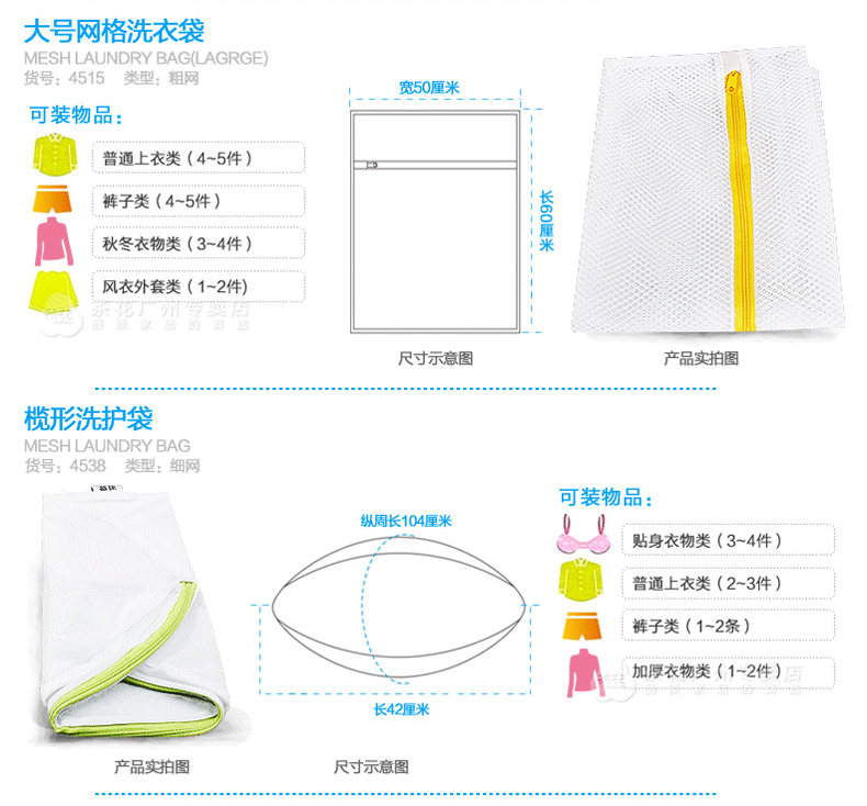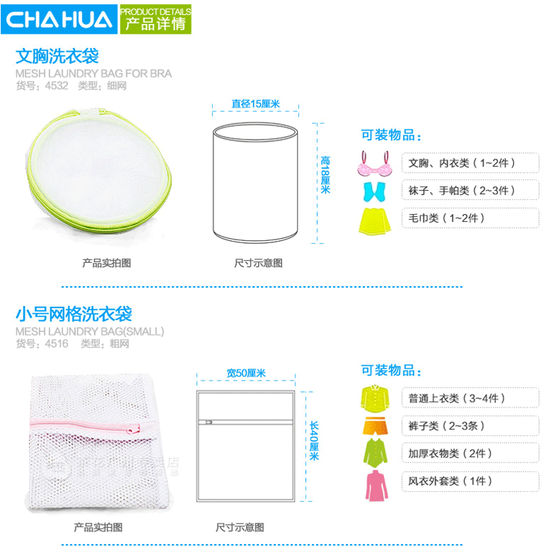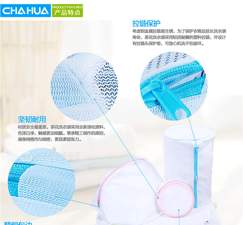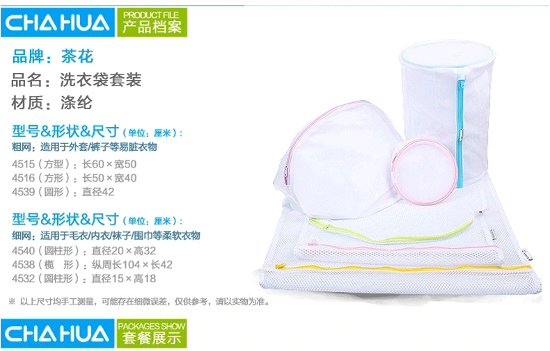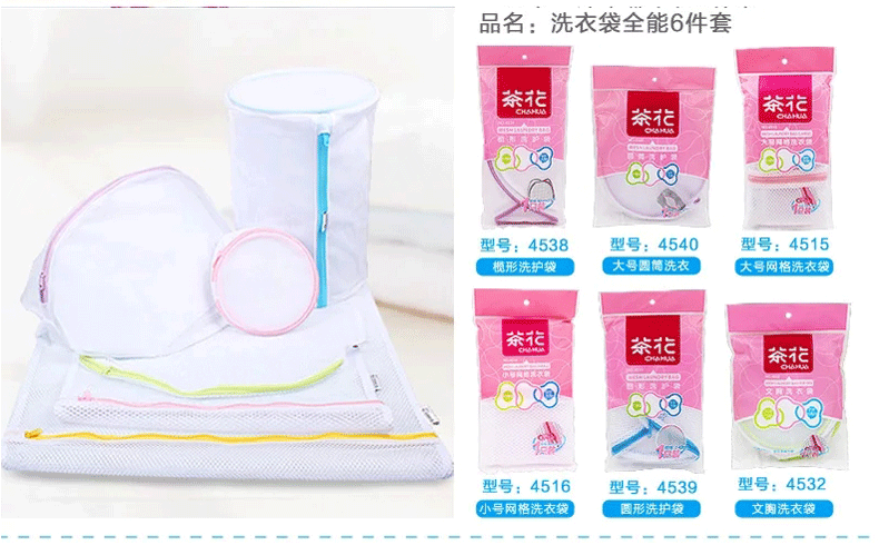 商品名称:茶花 洗衣袋护洗袋套装大号粗细网内衣文胸洗护袋洗衣机专用保护袋