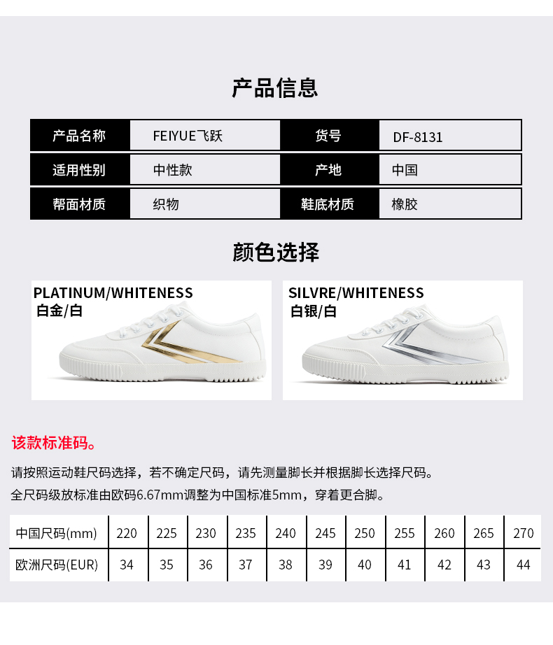 feiyue/飞跃 休闲小白鞋女款帆布鞋潮流运动鞋男女鞋
