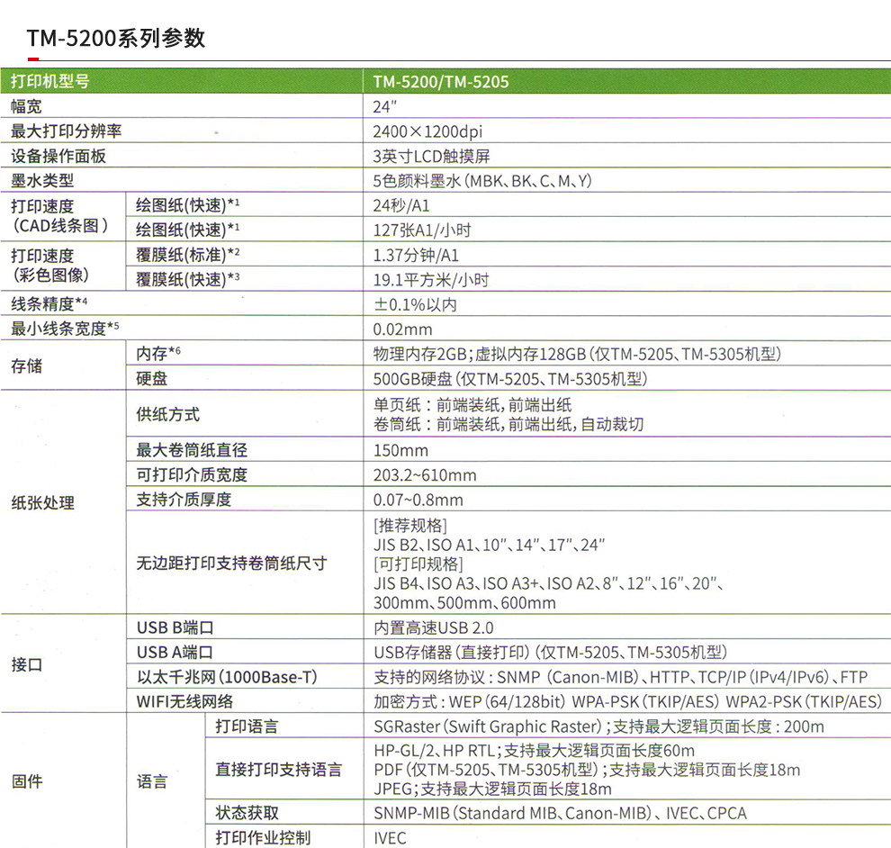 佳能 大幅面绘图仪24英寸A1打印机蓝图机写真机 TM-5200