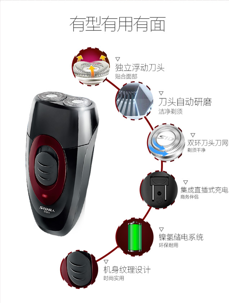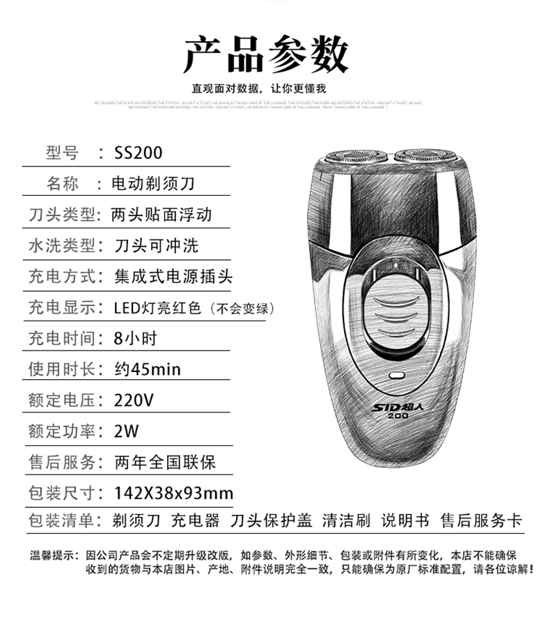 商品名称:超人 电动刮胡刀充电式剃须刀双头 SS200