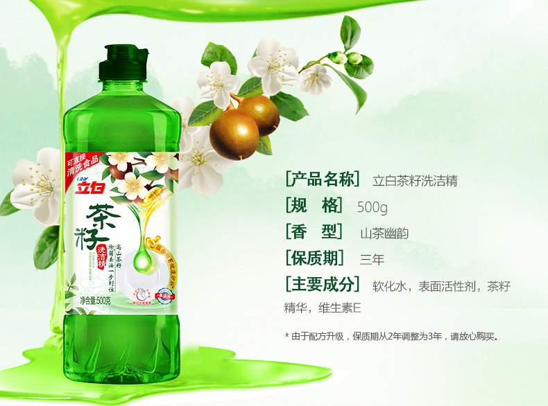 商品名称:立白 茶籽洗洁精除菌除螨500g/瓶