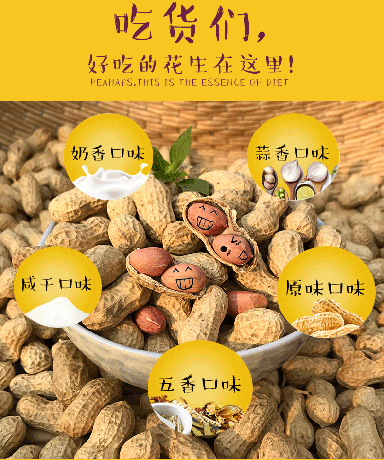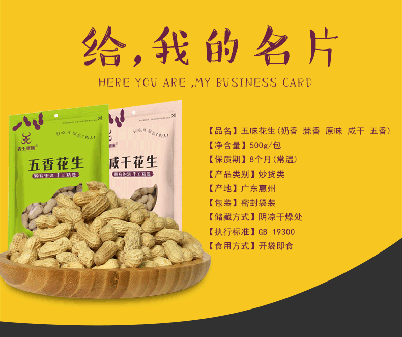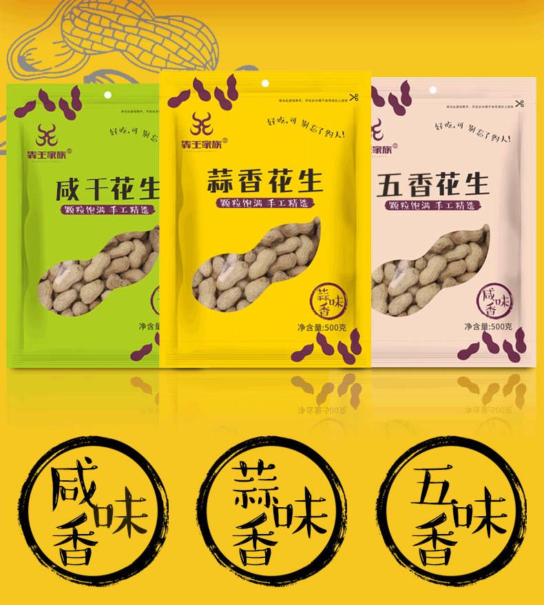 商品名称:国产 犇王家族花生500gx6袋蒜香花生米湿烤水煮咸干零食带壳红五香花生