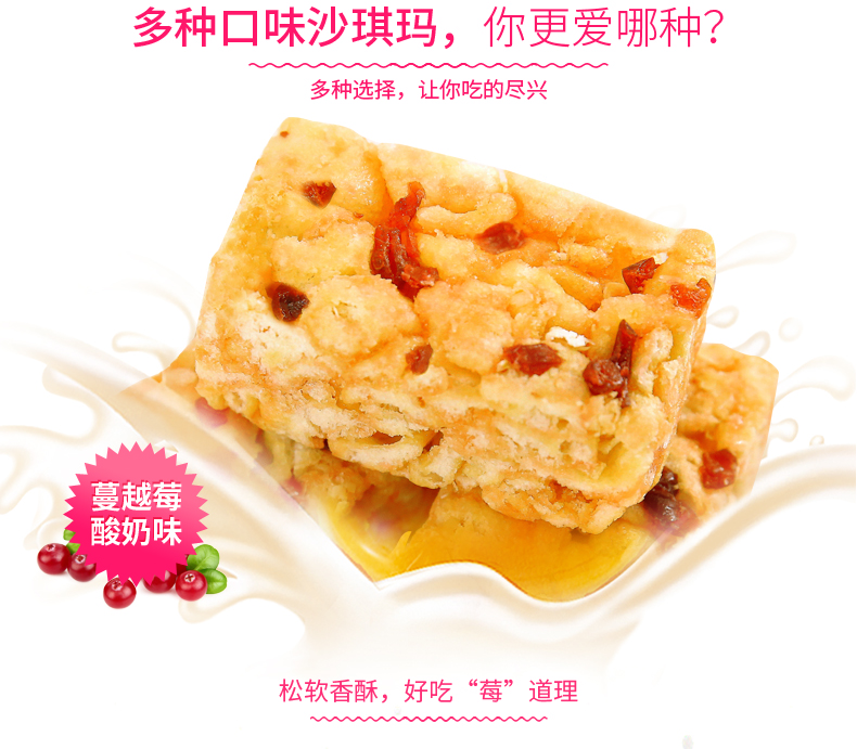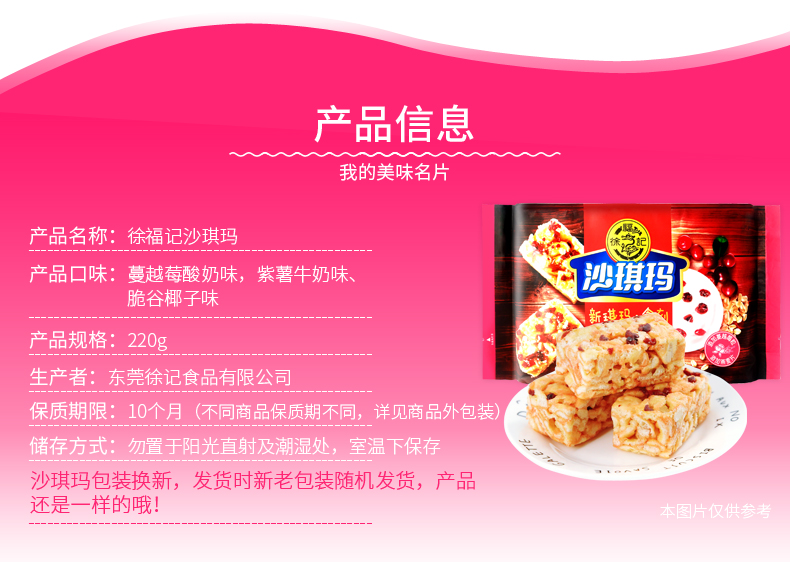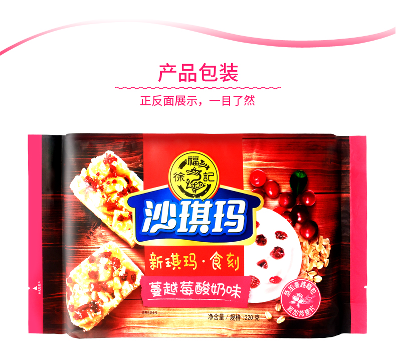 商品名称:徐福记 蔓越莓味沙琪玛220g*1袋早餐糕点心散装批发休闲小零食整箱