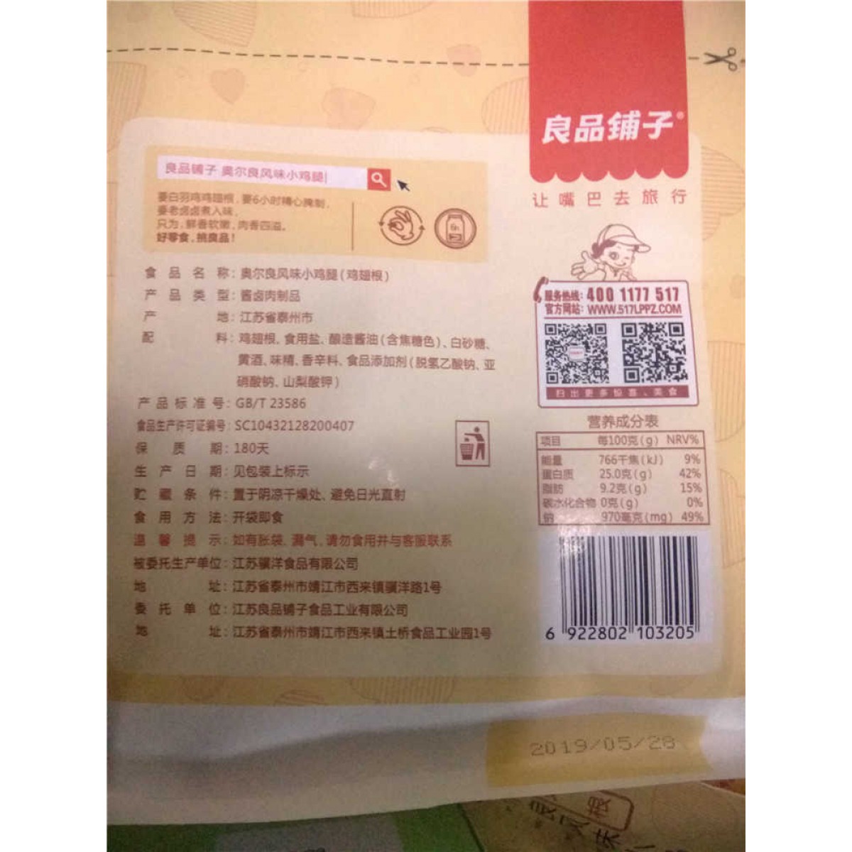 商品名称:良品铺子 奥尔良小鸡腿108g*1